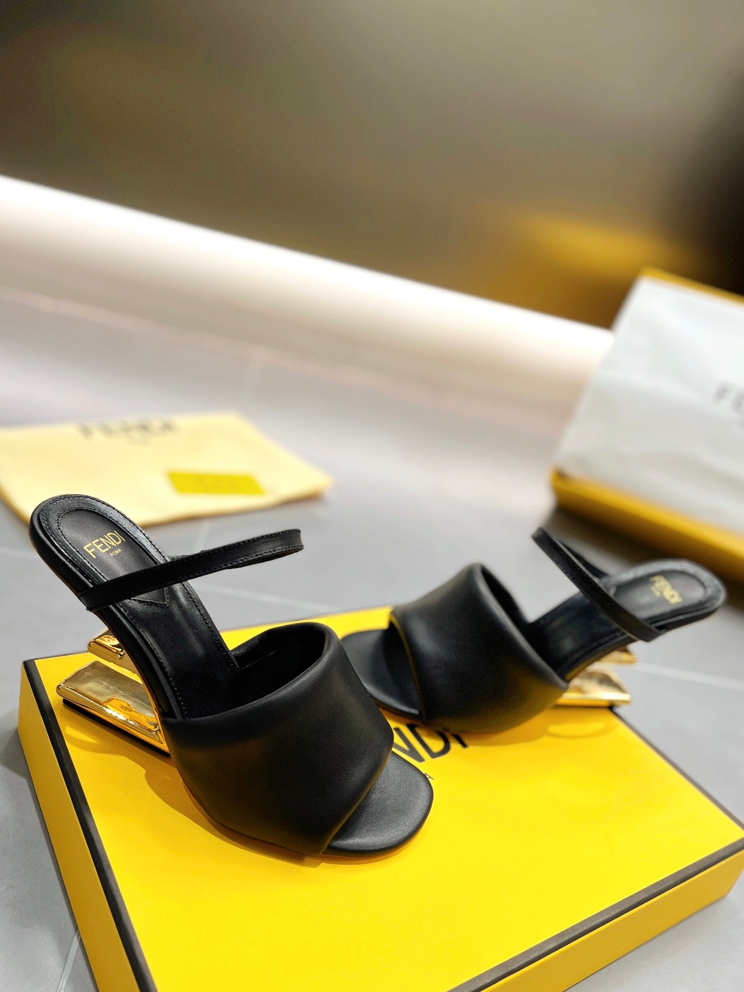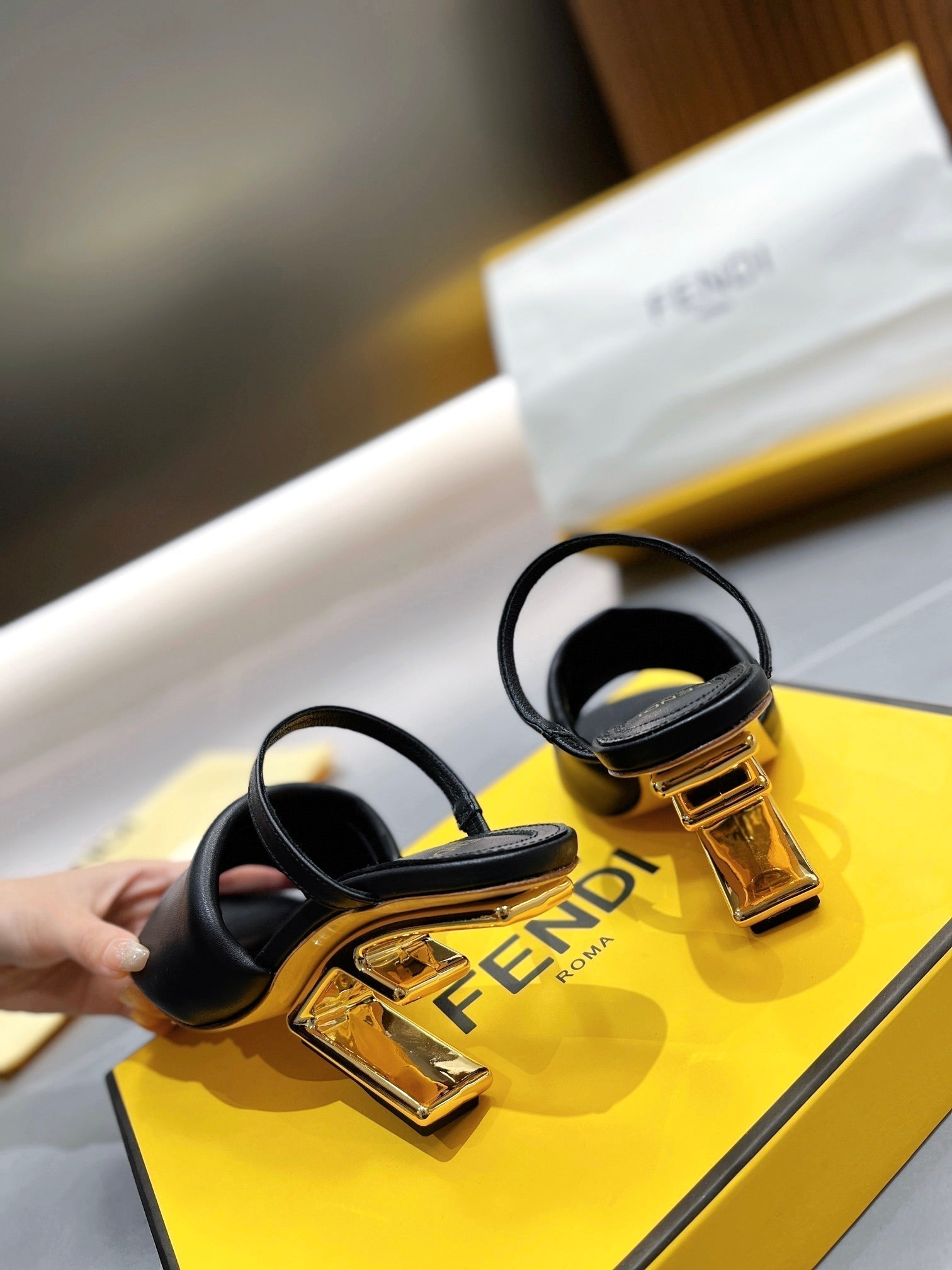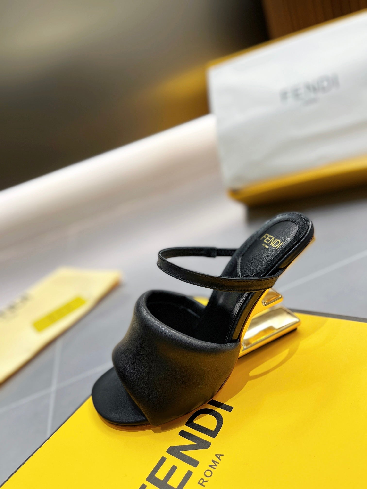 FENDI BAGUETTE HIGH-HEEL SANDALS 8 CM IN BLACK CALFSKIN