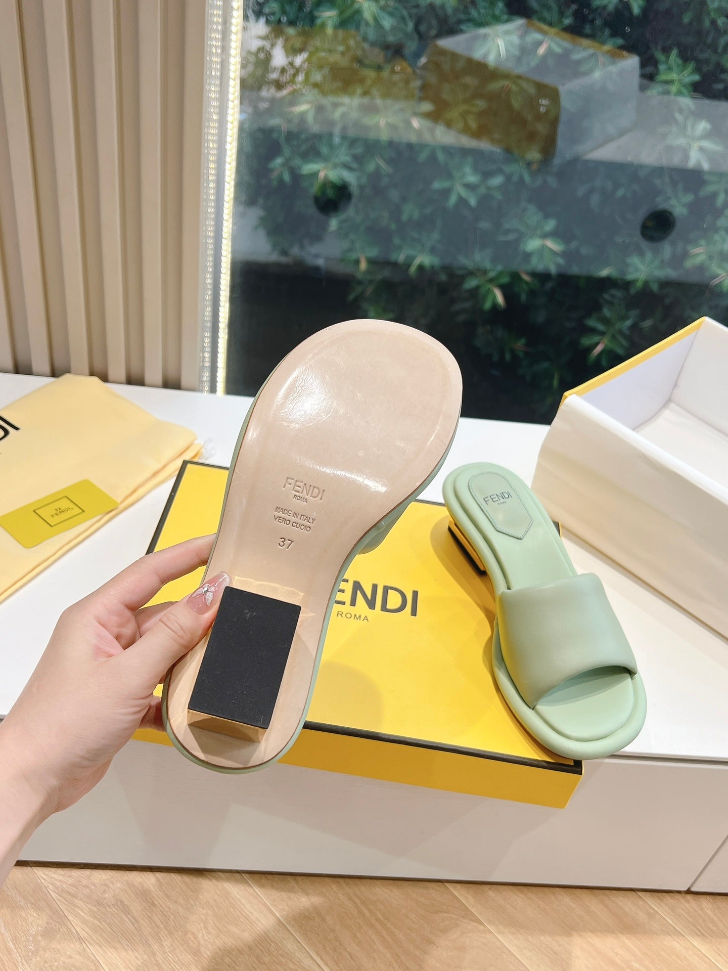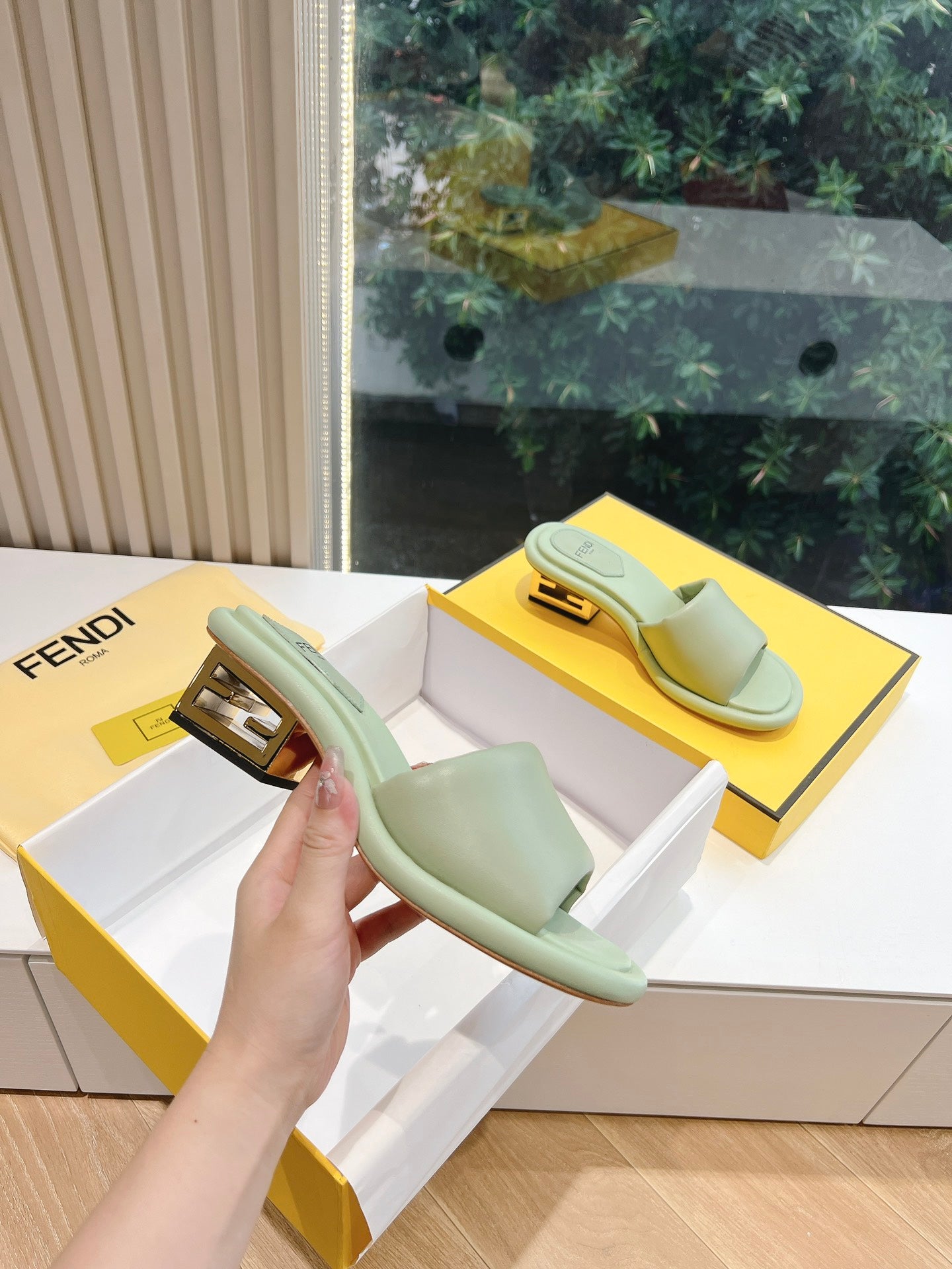 FF Baguette Slides Women 45 Nappa Leather Green