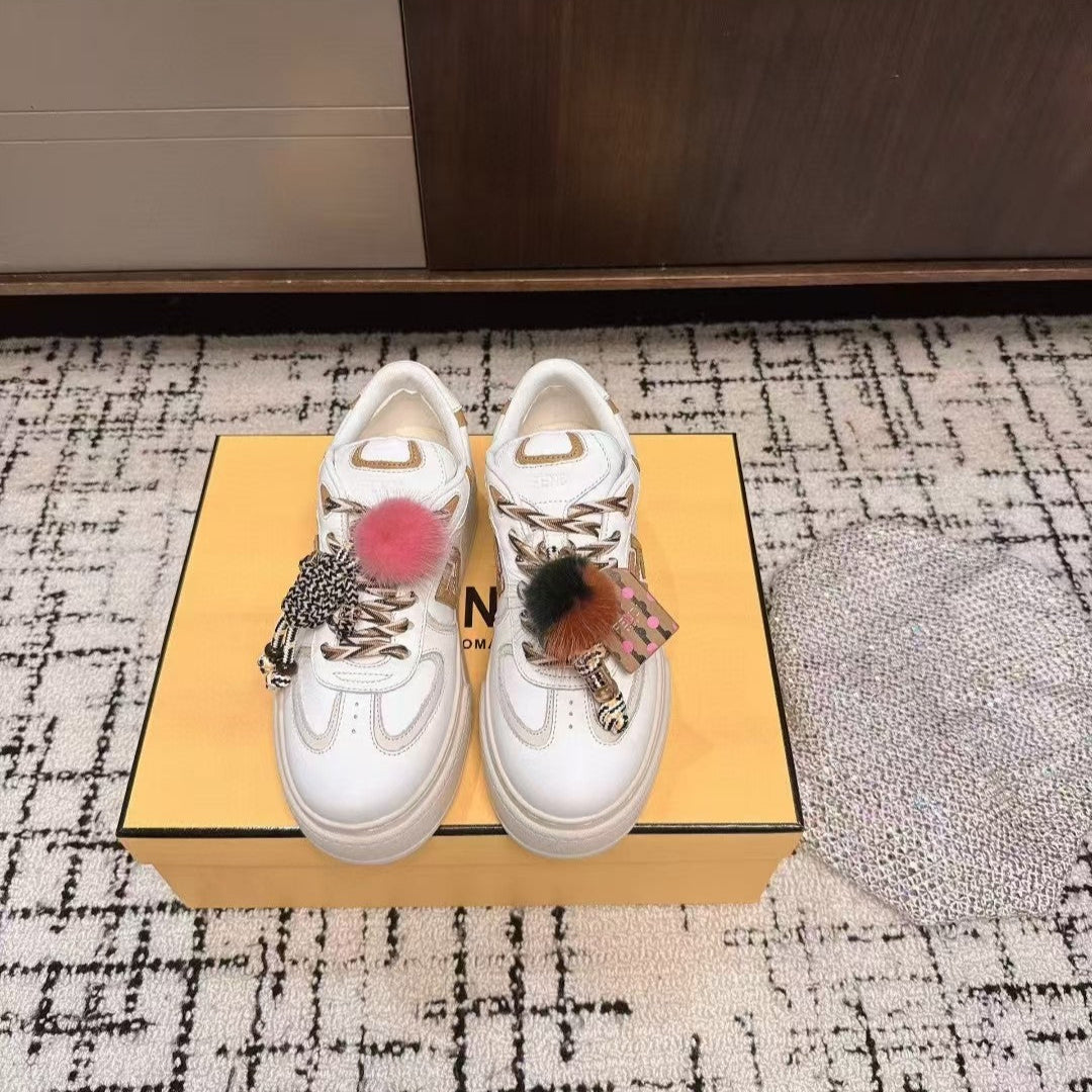 Fendi 25ss Thick-Sole Match Sneakers White Cowhide 470468