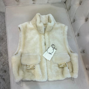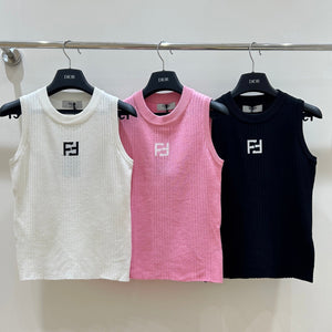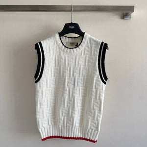 Fendi 25SS Double F Jacquard Knitted Wool White Vest