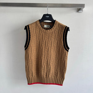 Fendi 25SS Double F Jacquard Knitted Wool Brown Vest