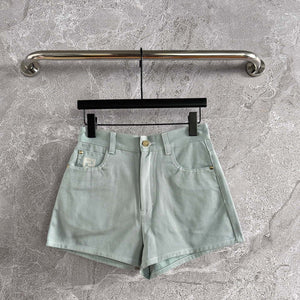 Fendi Hand-made Needle-picking Shorts Blue Green Cotton