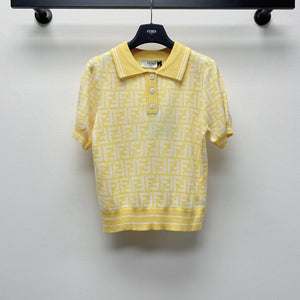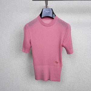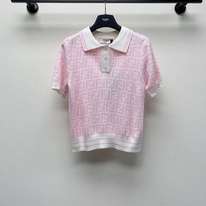 Fendi 25F Knitted Short Sleeves Shirt Pink Wool