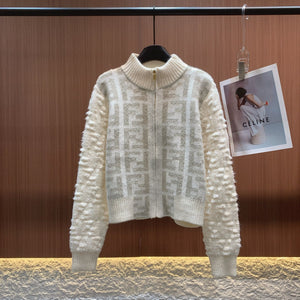 Fendi 25FW Knited Wool Jacquard Cream Cardigan