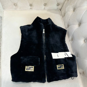 Fendi 25SS Double F Jacquard Knitted Wool Black Vest