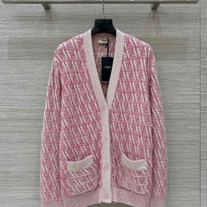 Fendi 2025 V-neck Cardigan Cherry Pink Wool