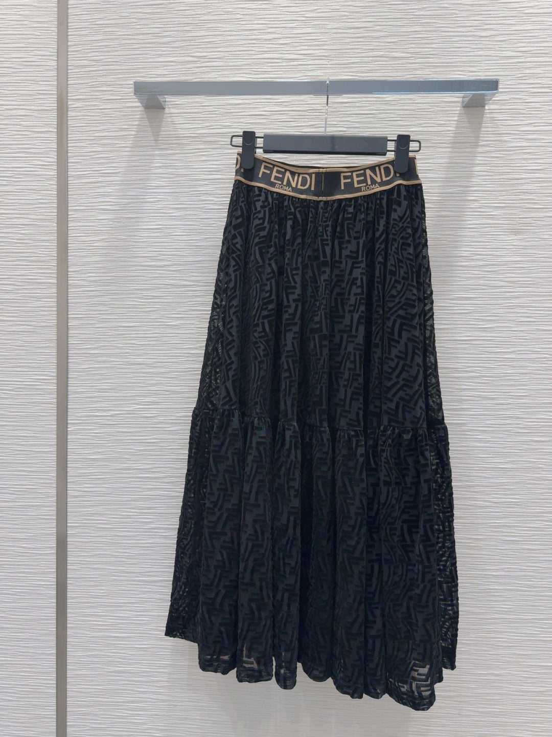 Fendi 2025 Long Pleated Lace Dress Black Polyester
