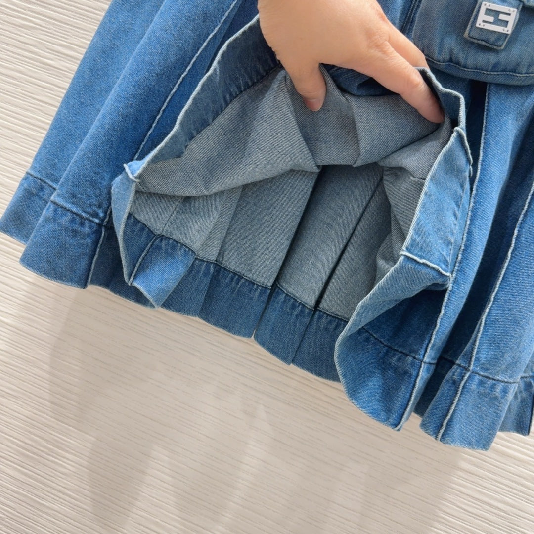 Fendi 2025 Pleated Denim Skirt Blue Cotton