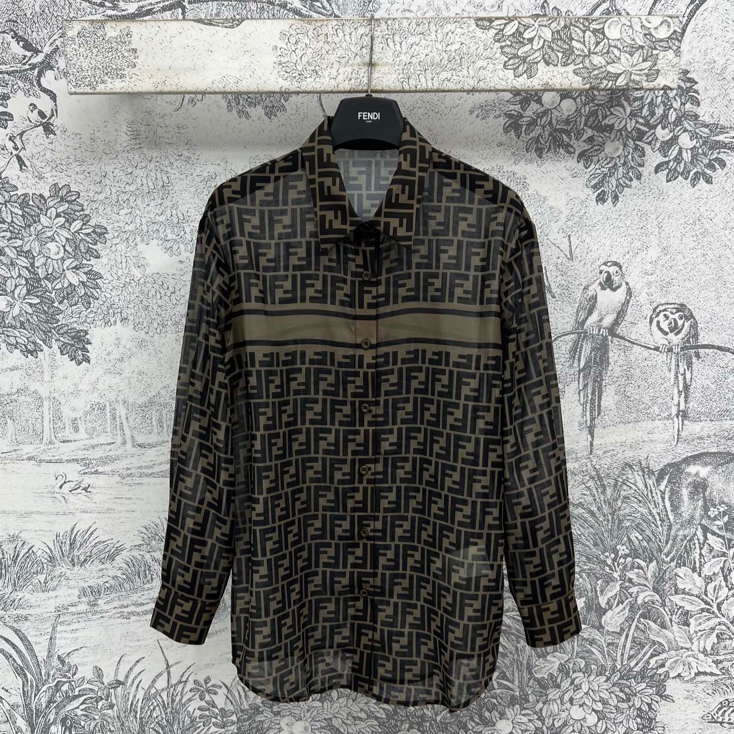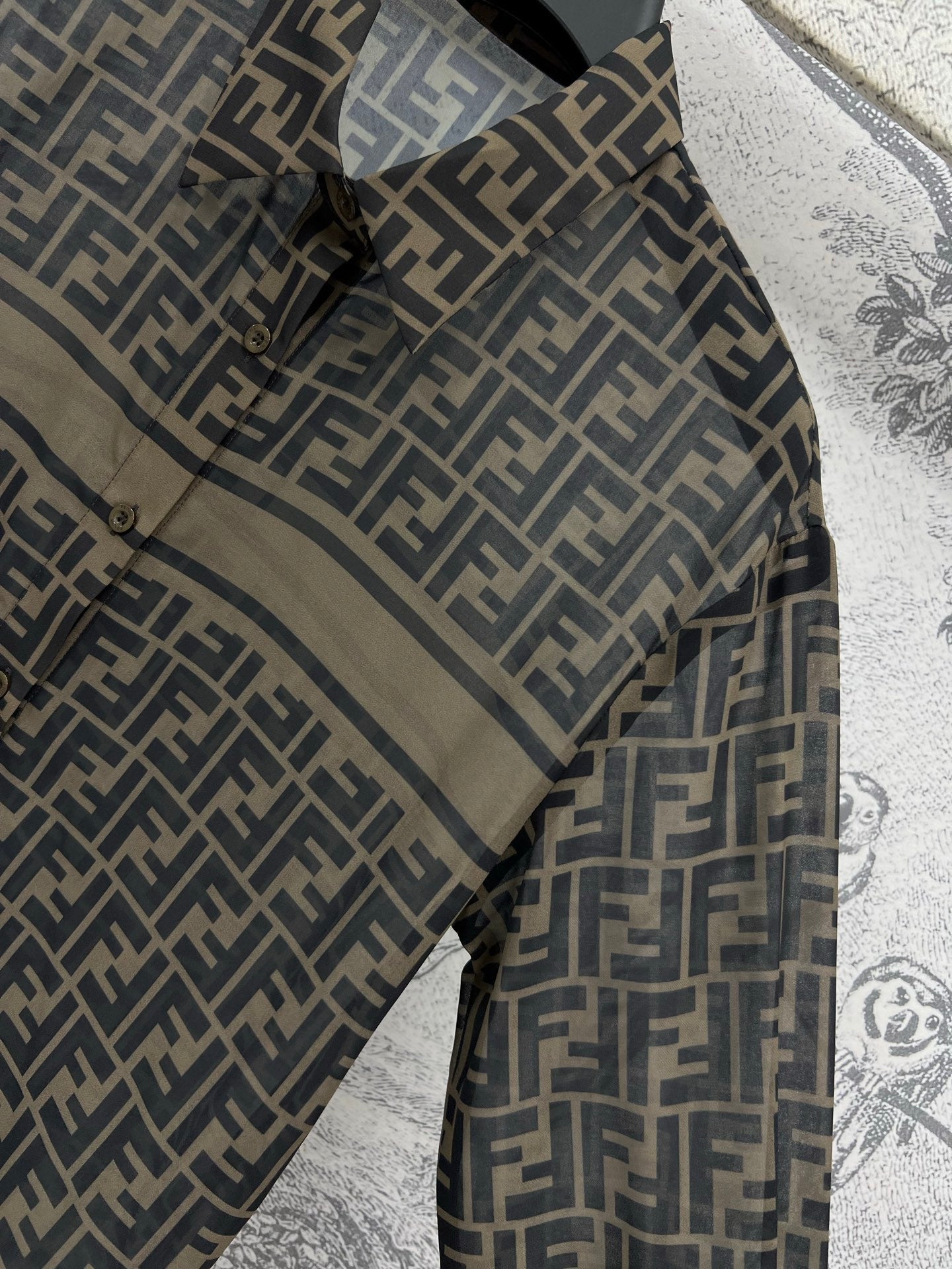 Fendi 25 Shirt Black Brown Polyester fiber