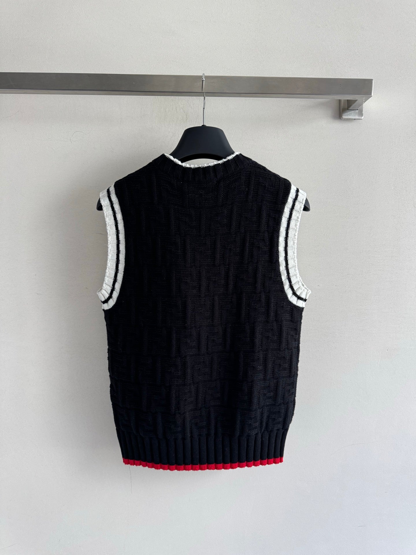 Fendi 25SS Double F Jacquard Knitted Wool Black Vest