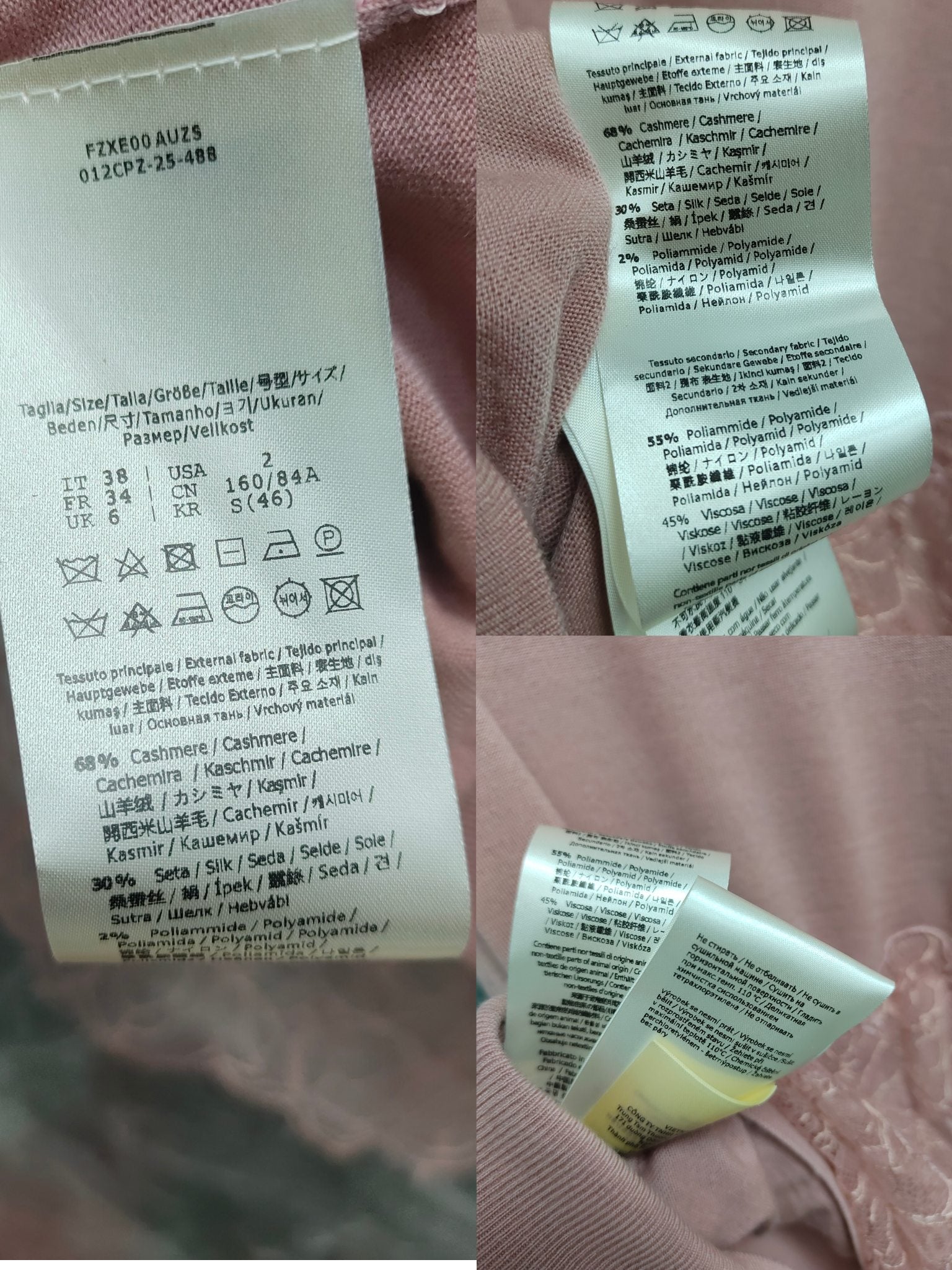Fendi 25SS Polo Collar Lace Hem Soft Pink Cashmere Shirt