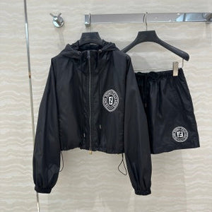Fendi Hooded Jacket Set Beige Silk Fabric