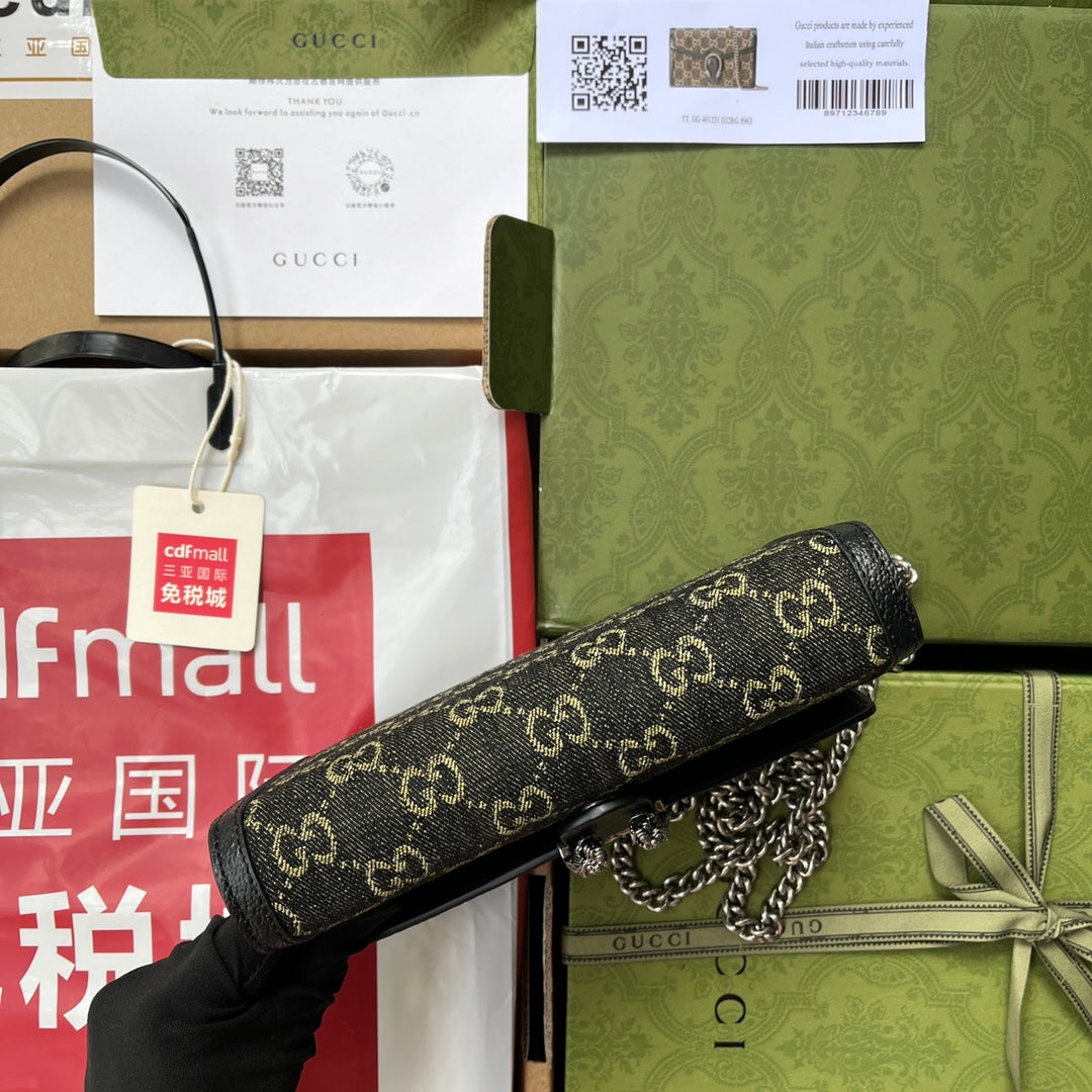 DYONYSUS SHOULDER BAG 20 IN BLACK YELLOW DENIM AND BLACK CALFSKIN TRIM SILVER HARDWARE