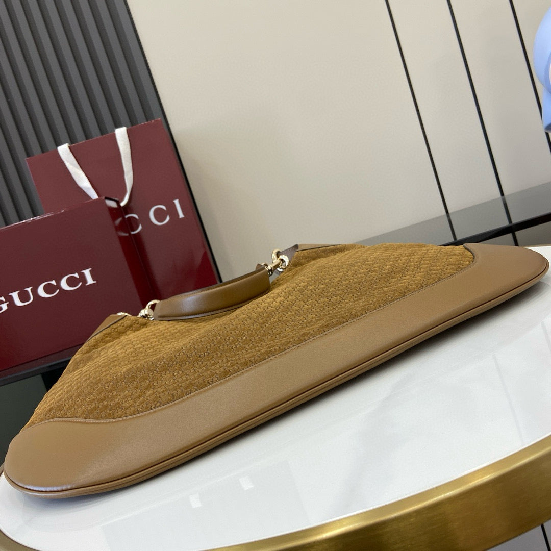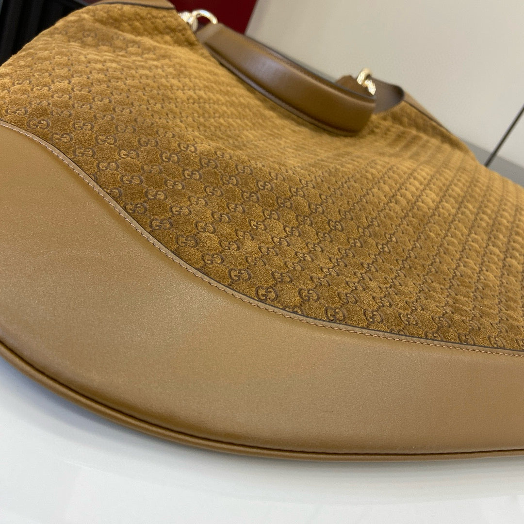 GG Tote Bag Brown Velvet Embossed and Leather