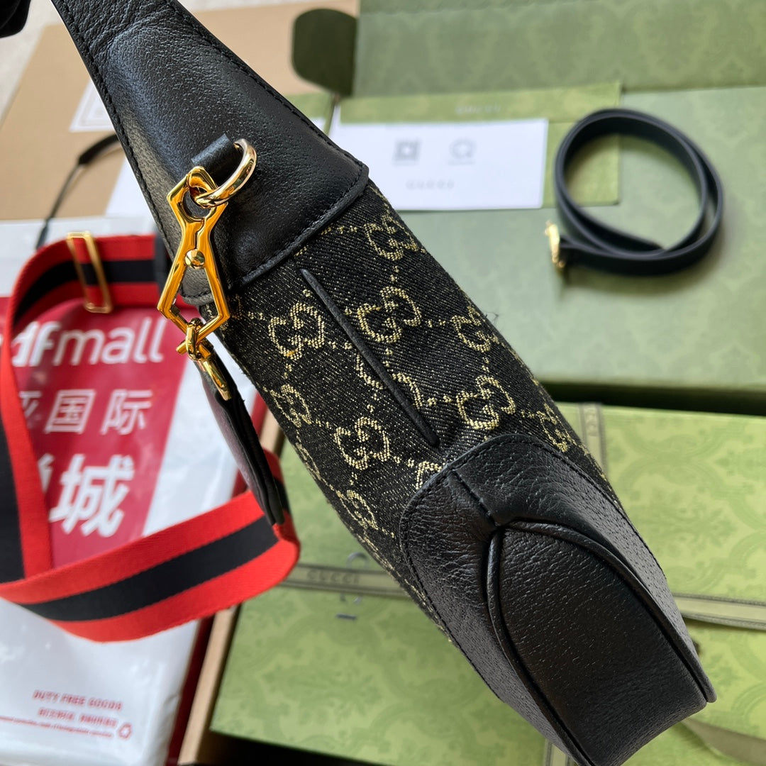 JACKIE 1961 SHOULDER BAG 28 IN BLACK YELLOW DENIM AND BLACK CALFSKIN TRIM GOLD HARDWARE
