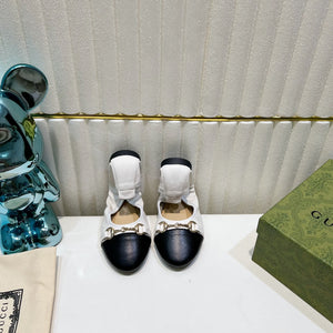 GG BALLET SUPER SLIM BUCKLE BLACK AND CREAM LAMBSKIN