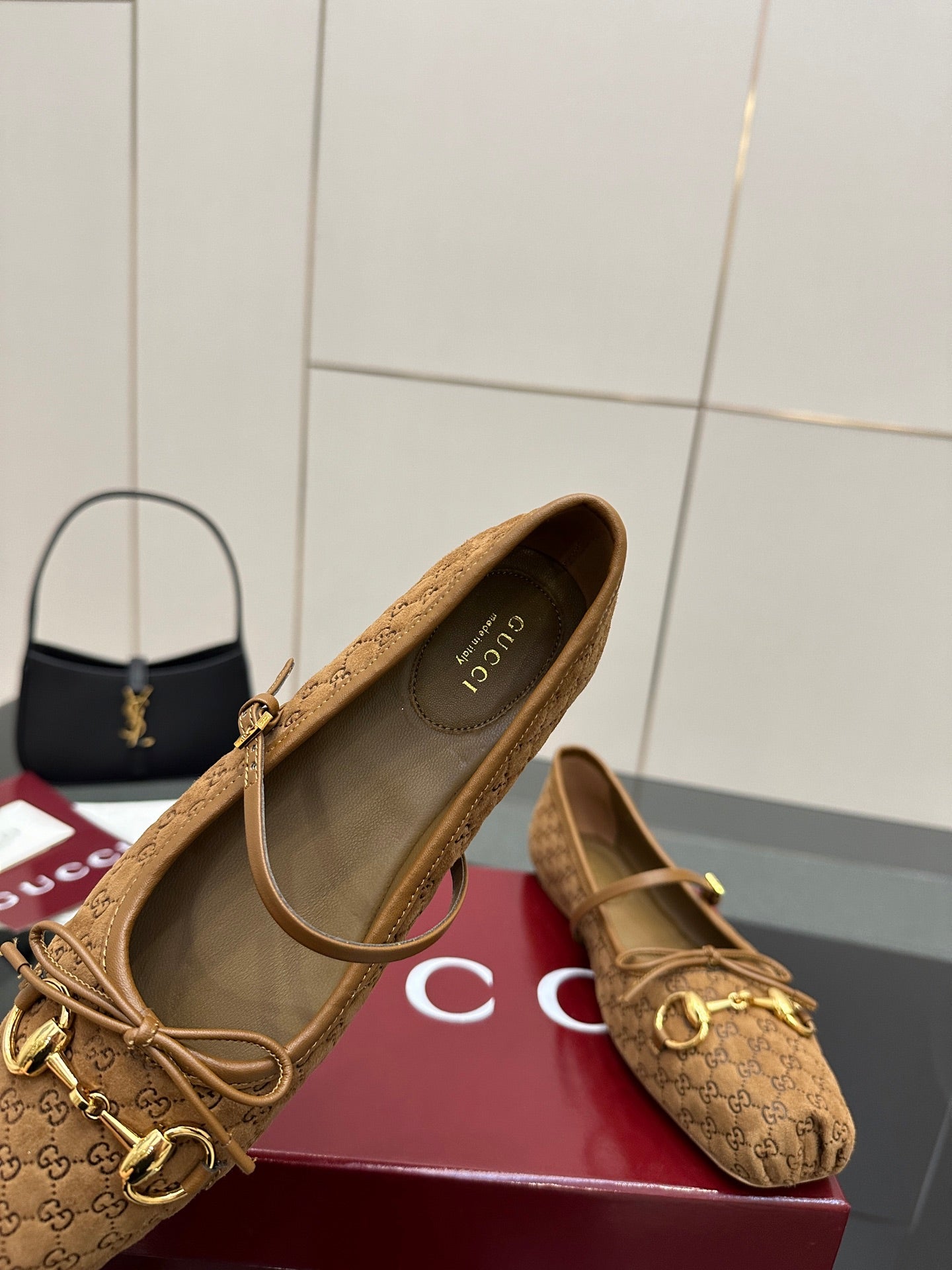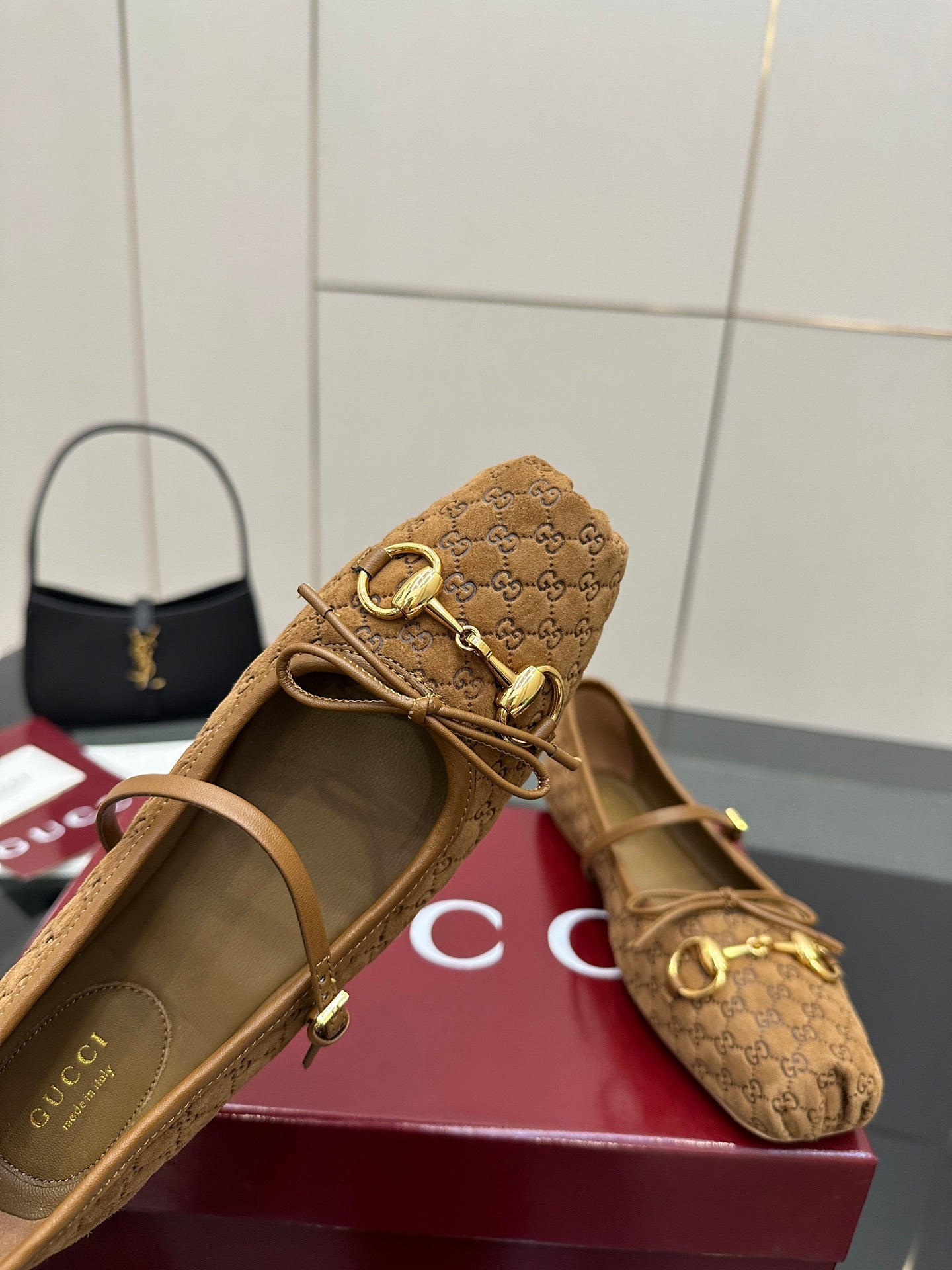 GC 25 Horsebit Ballet Flat Dark Brown Monogram Suede