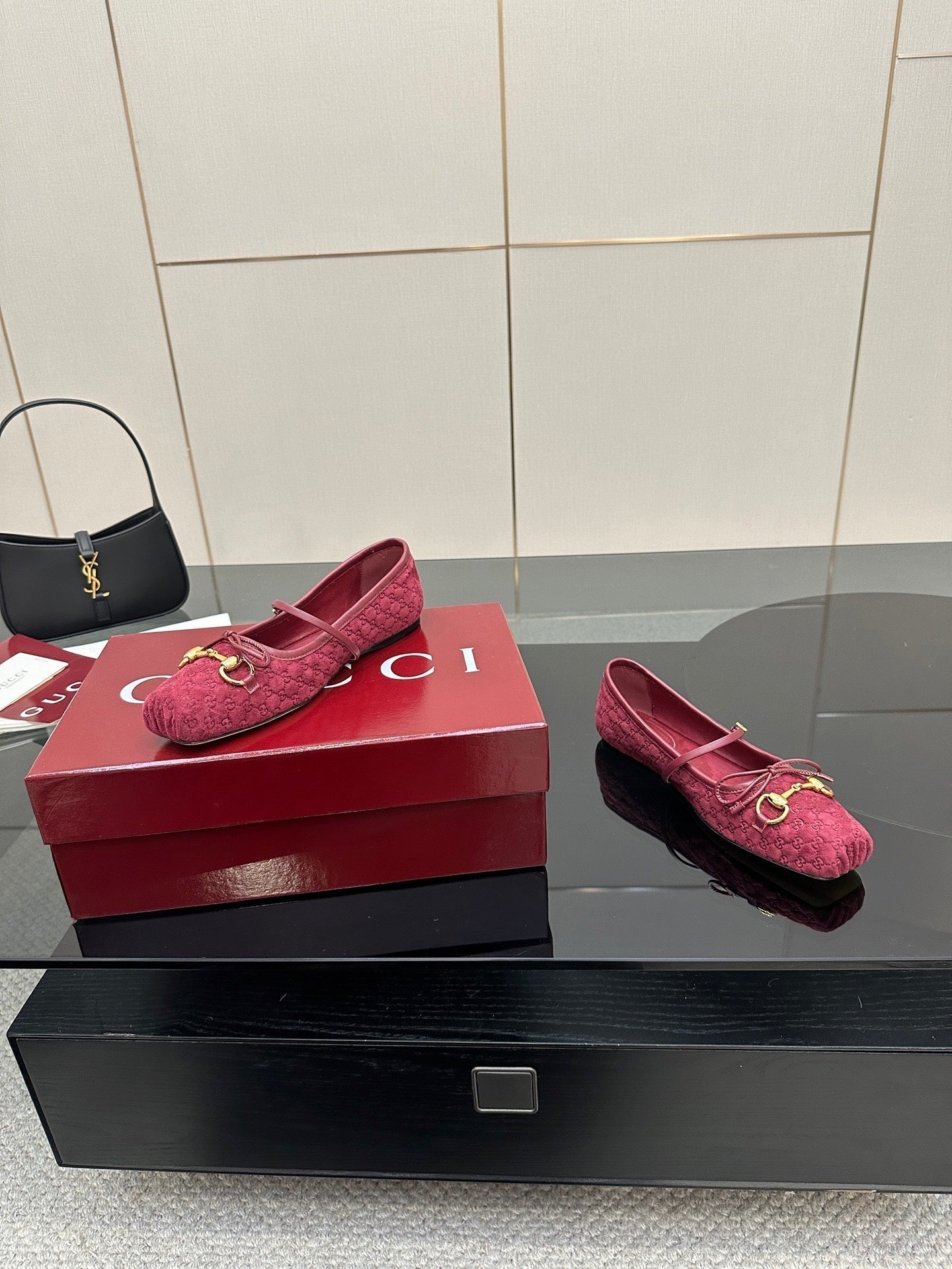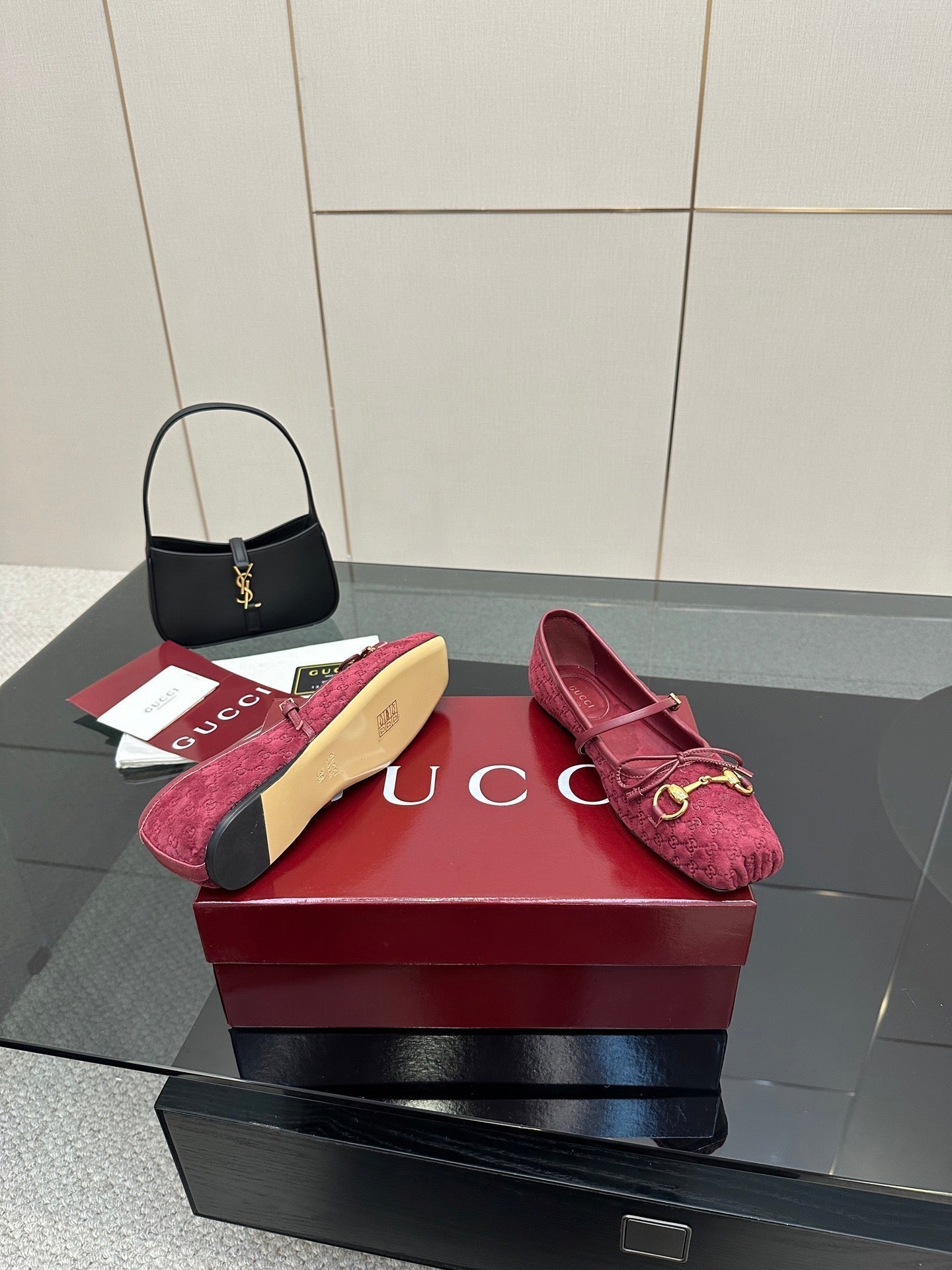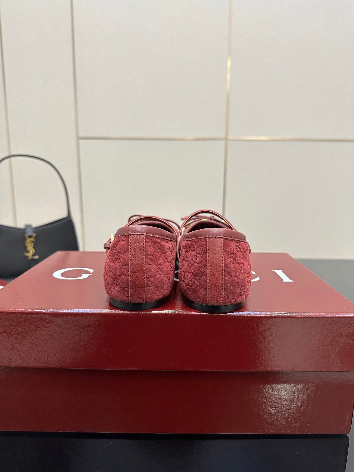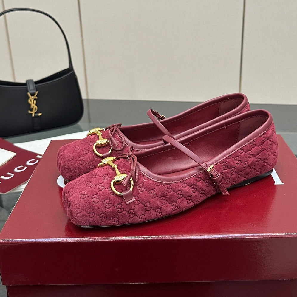 GC 25 Horsebit Ballet Flat Dark Red Monogram Suede