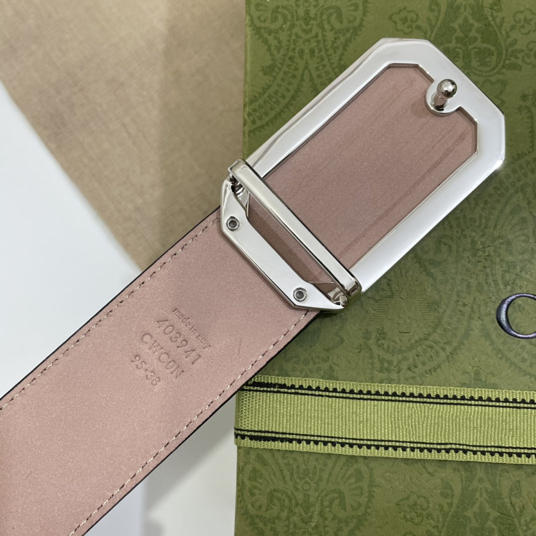 G BELT SILVER SQUARE BUCKLE BLACK LEATHER 3.5CM