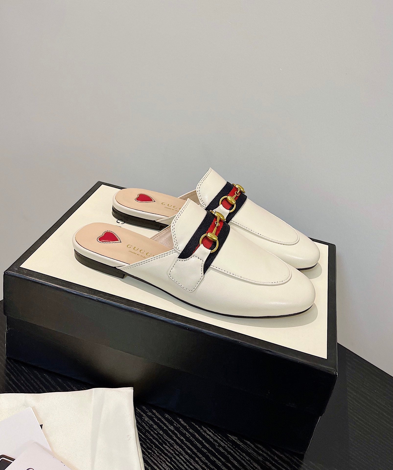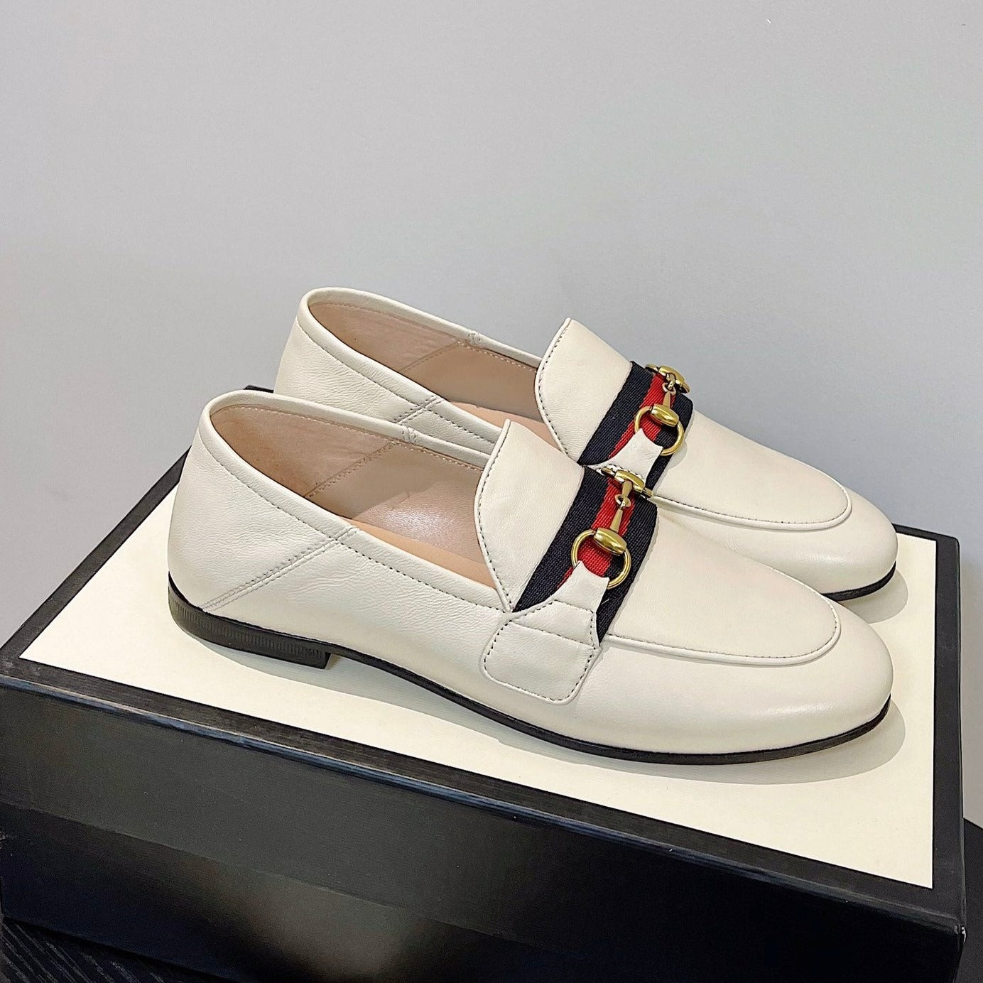 gg loafer cream calfskin black red canvas