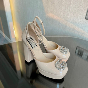 GG CRYSTALS SLINGBACK PUMP CREAM FABRIC