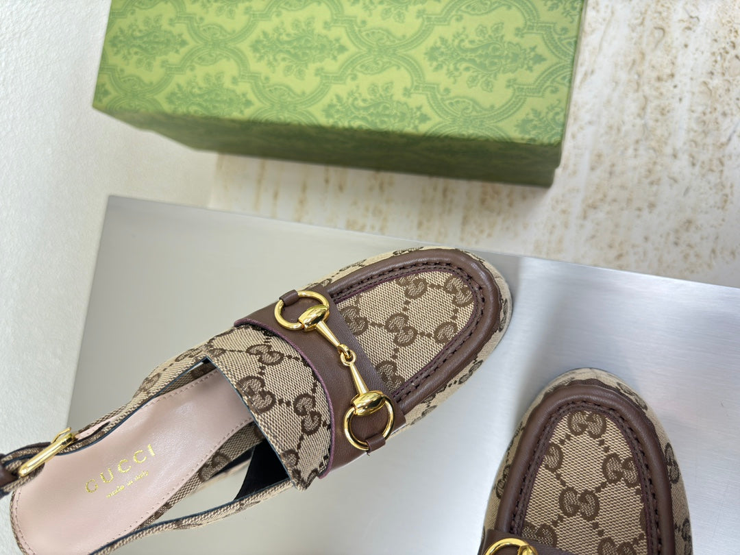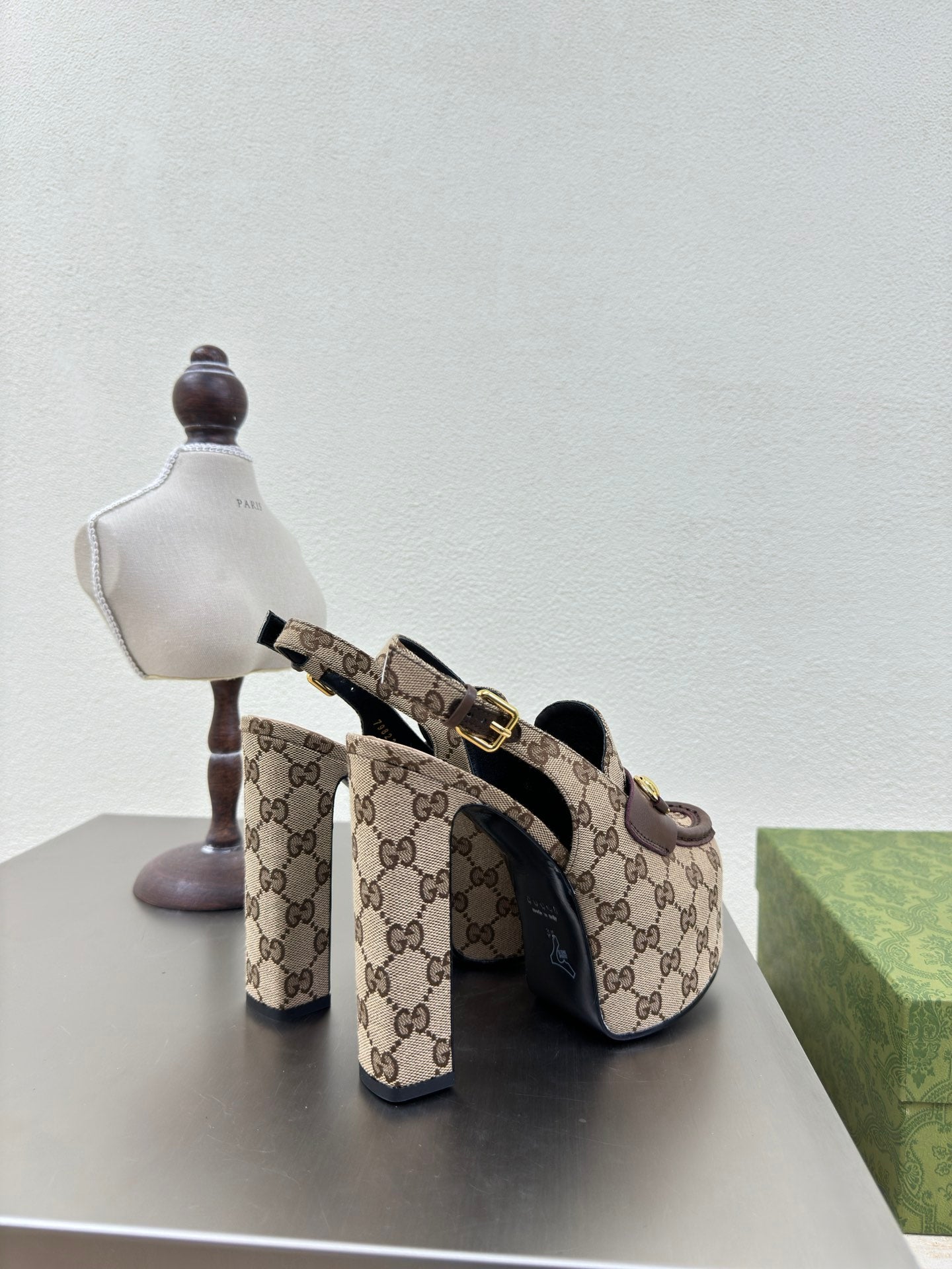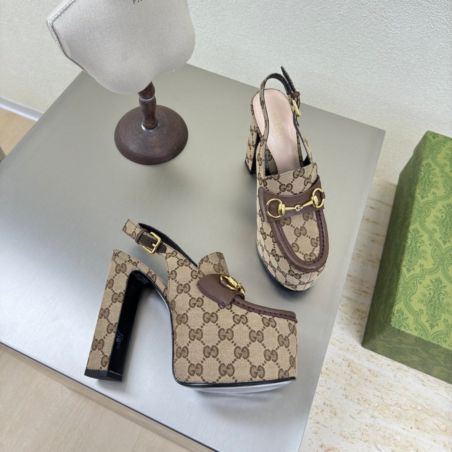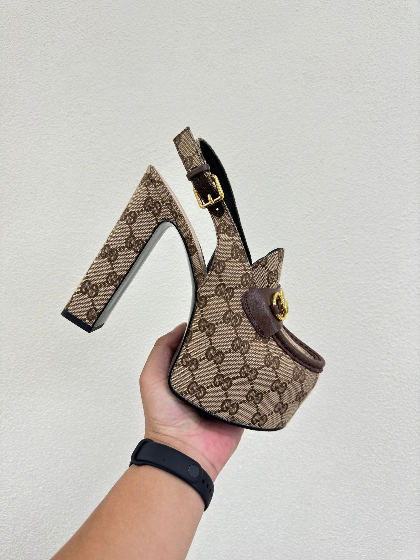 GG WOMEN'S HORSEBIT PLATFORM LOAFER SLINGBACK IN TAN BEIGE CANVAS