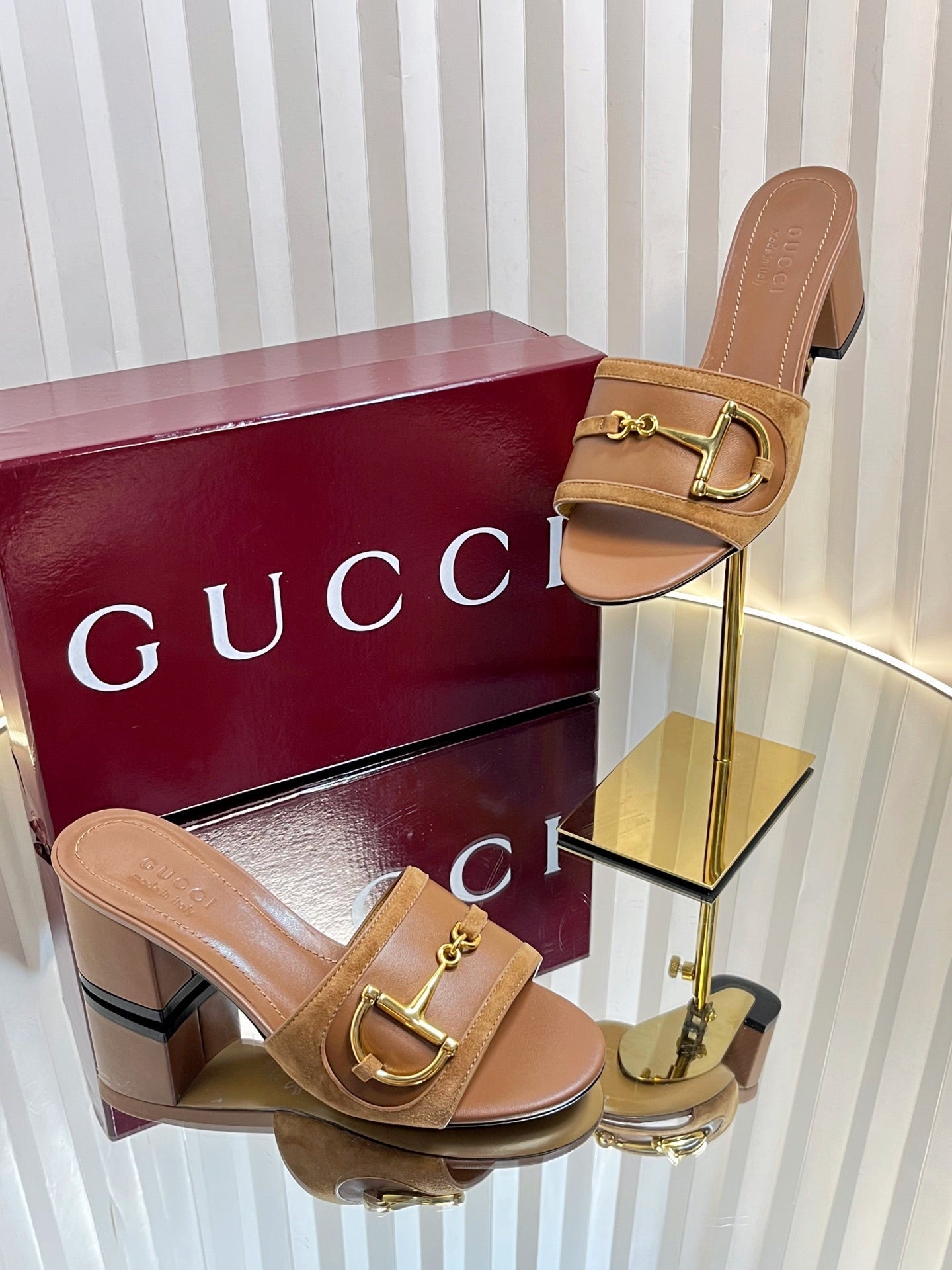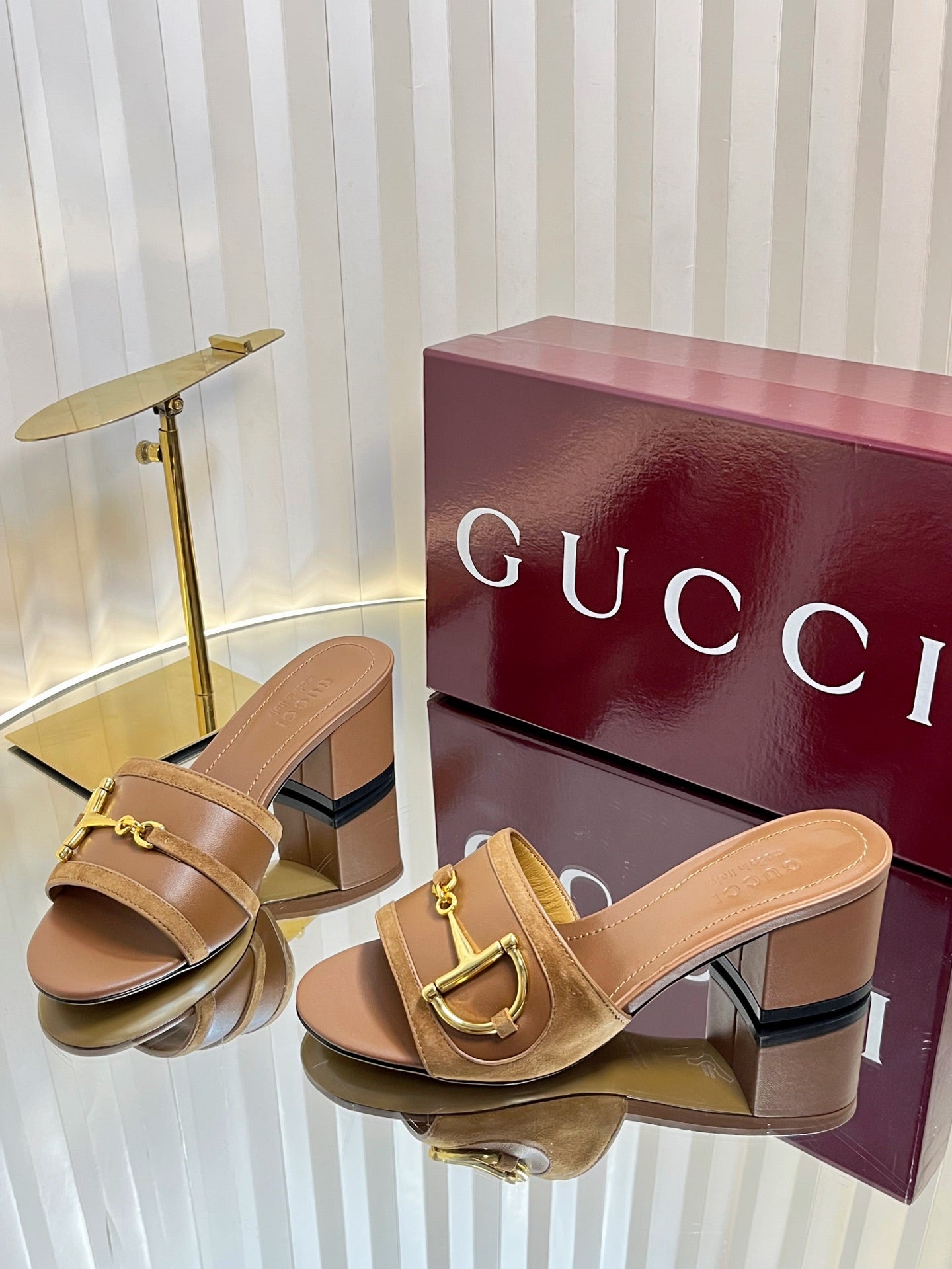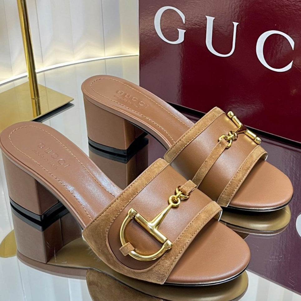 GC 25 Horsebit Sandals 50mm Brown Suede Sheepskin 294654