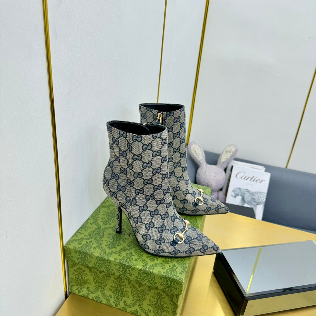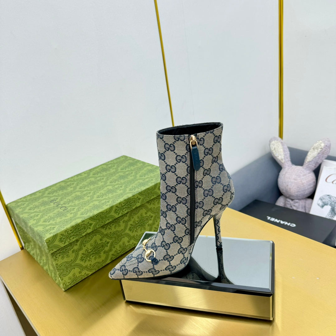 GG HORSEBIT ANKLE BOOT IN PALE GRAY MONOGRAM CANVAS