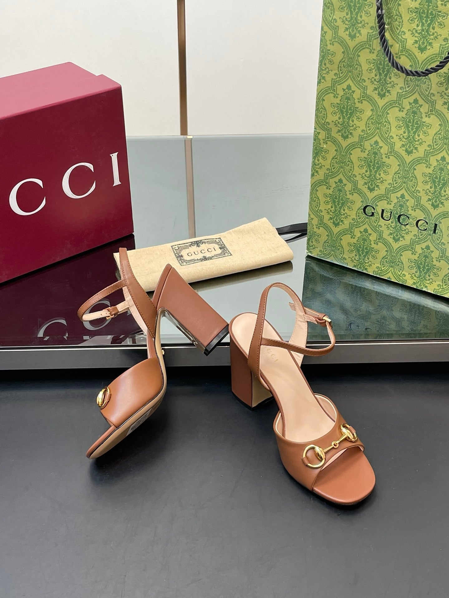 GG Women Horsebit High Heel Sandal Open Toe Gold Sheepskin 149211