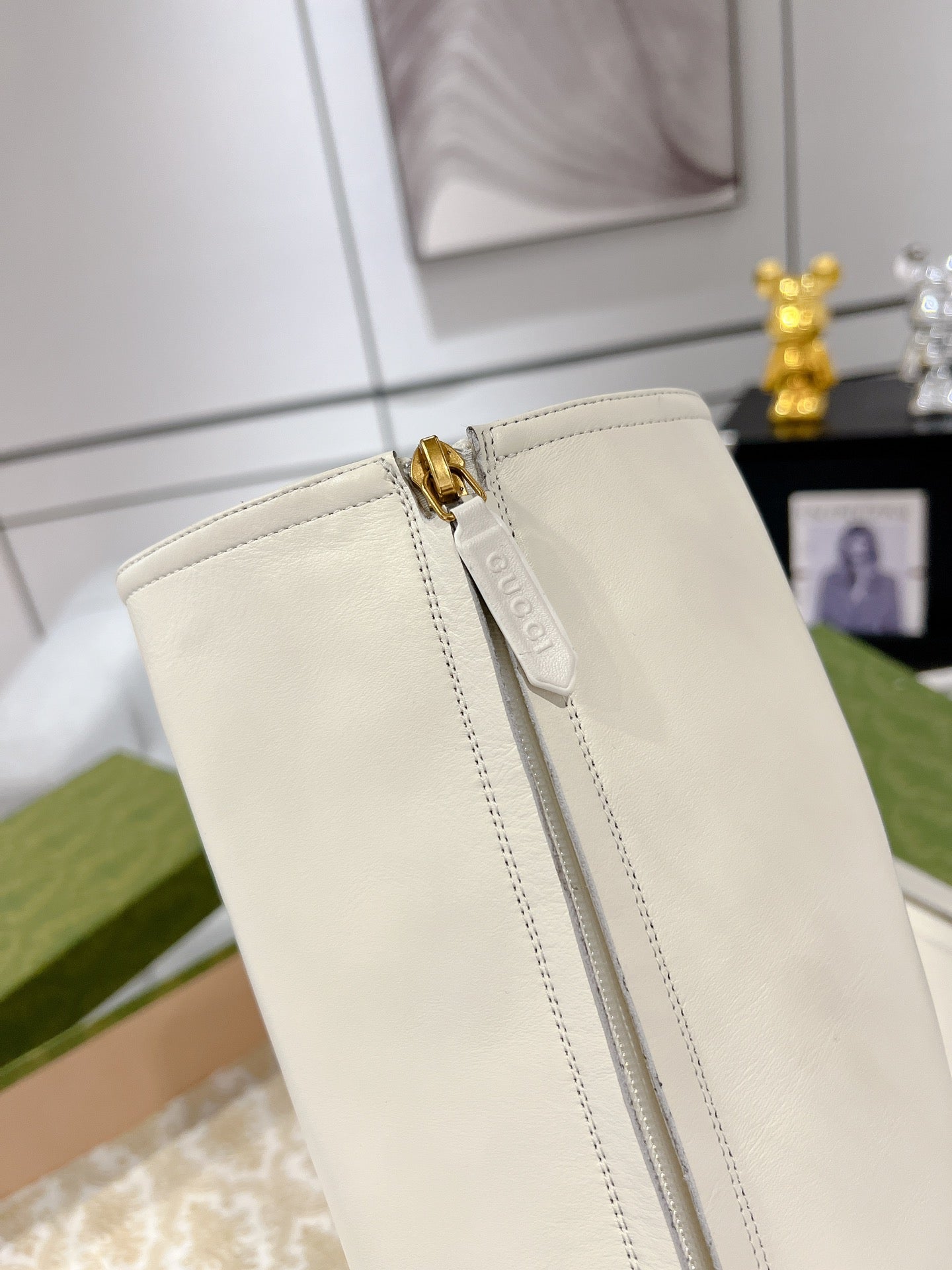 Gucci Horsebit Square Toe Mid-heeled Ankle High Boots White Cowhide 490538