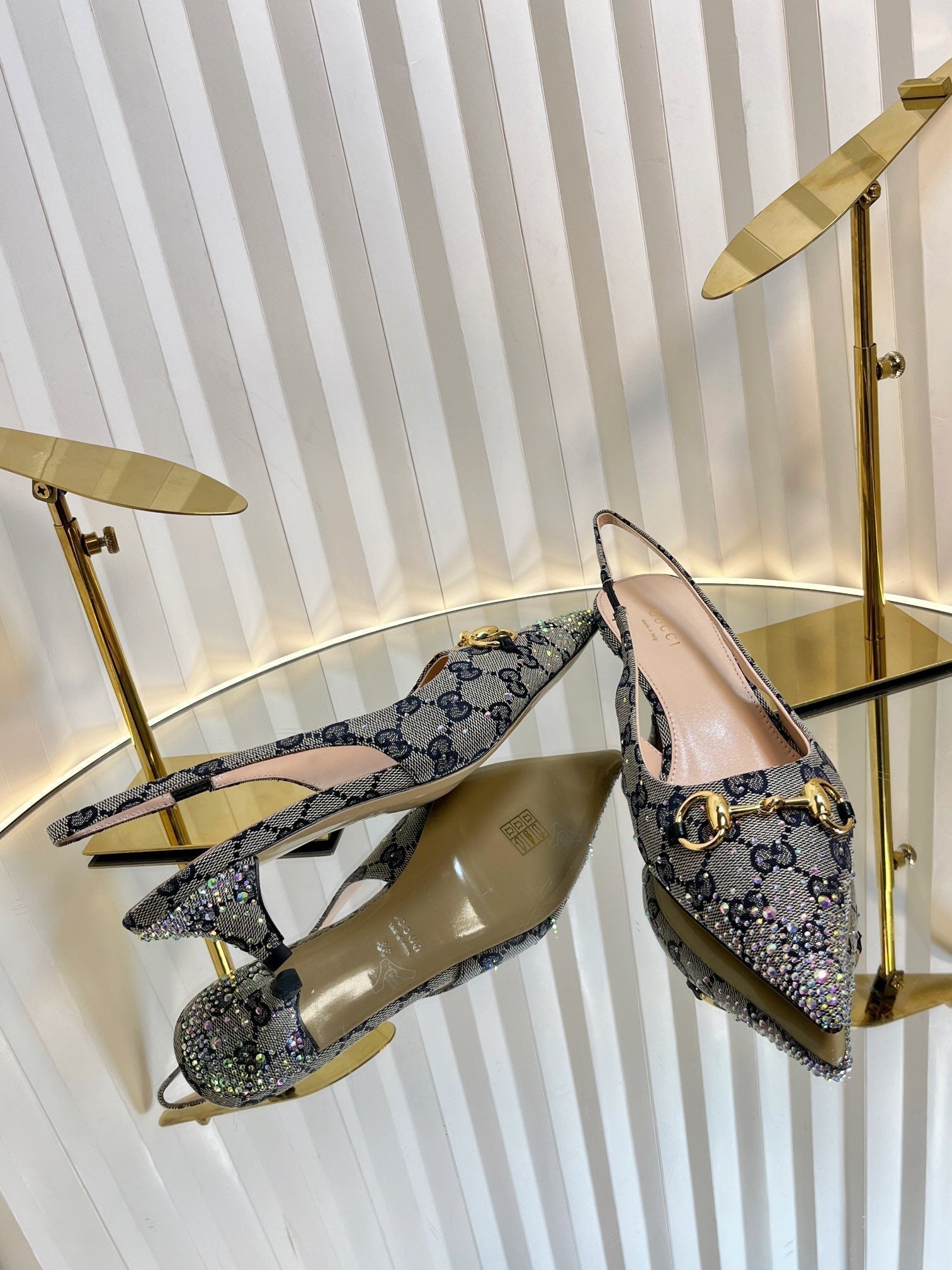 GC Crystal Horsebit Slingback 50mm Beige mix Blue Canvas lambskin 294616