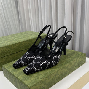 GC Crystal-Embellished Slingbacks Black Silk Sheepskin 294611