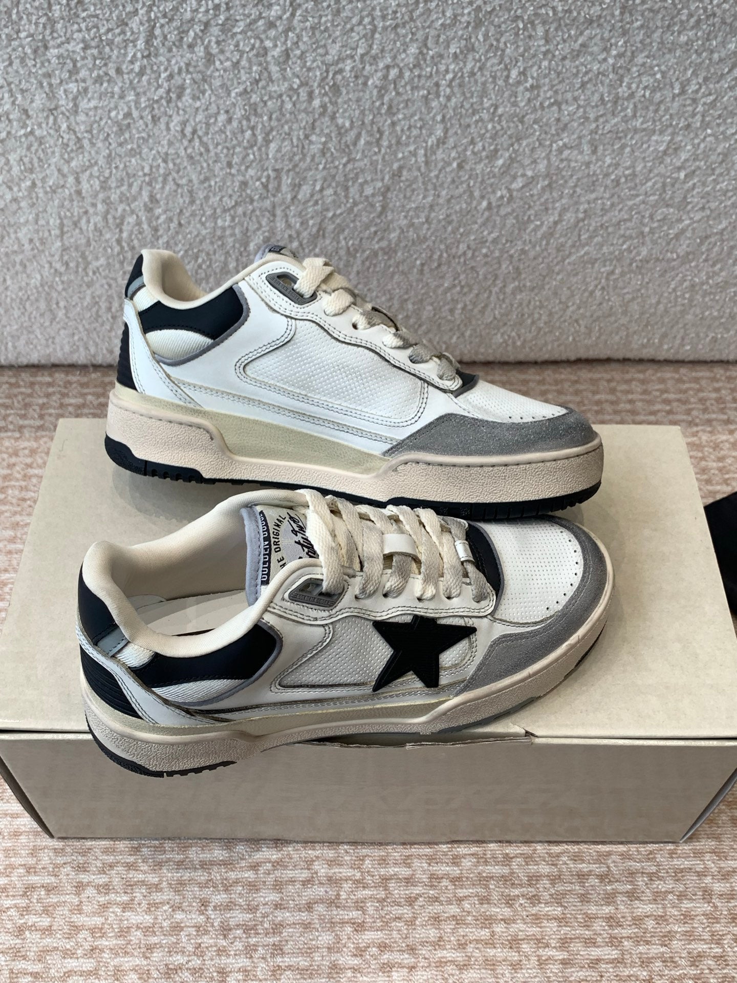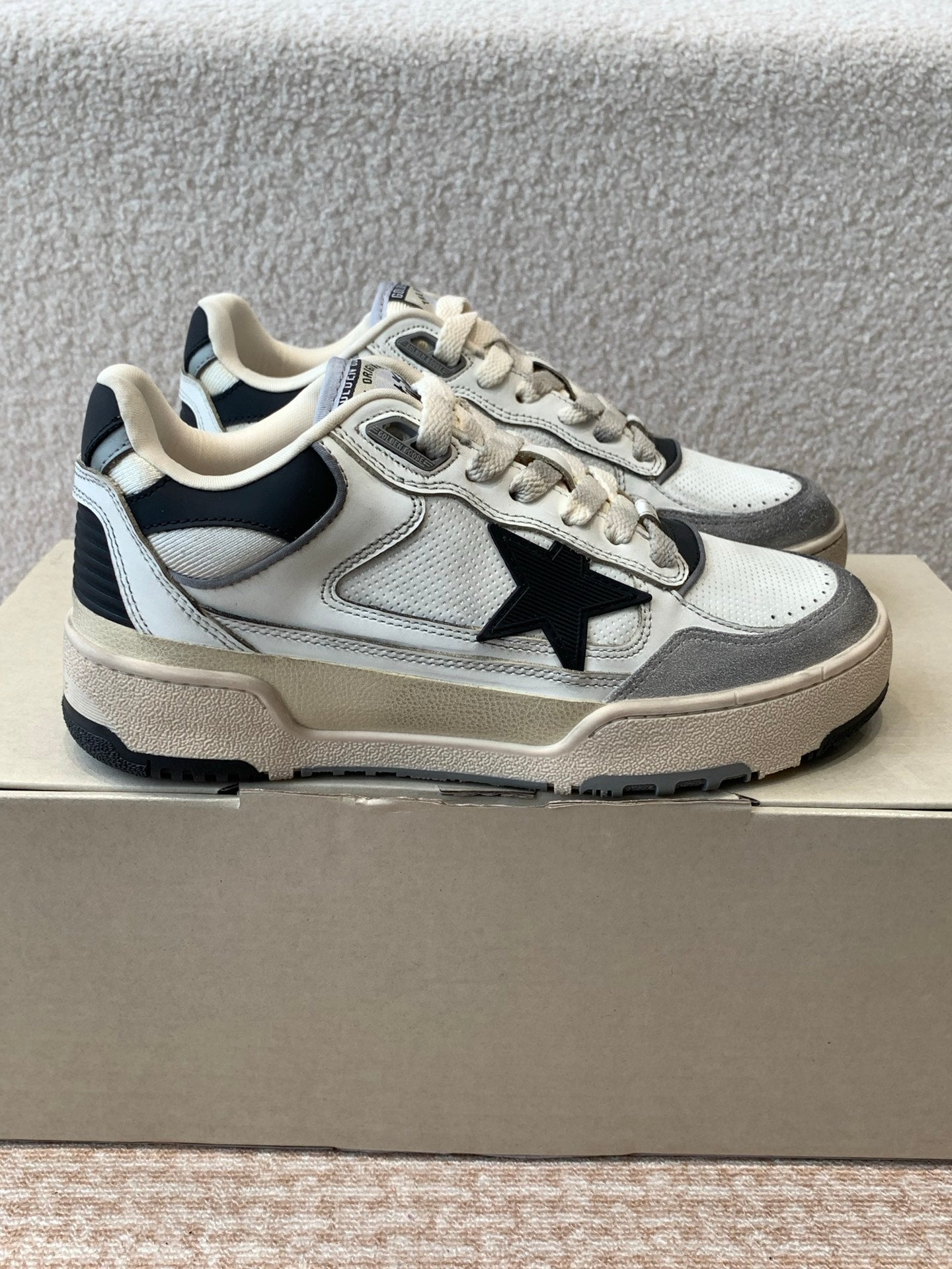 FORTY2 SNEAKERS WITH BLACK STAR WHITE CALFSKIN AND GREY SUEDE UPPER