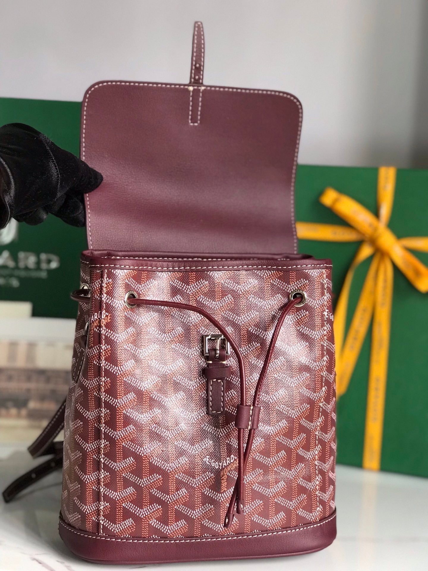 ALPIN MINI BACKPACK 21 IN WINE RED LAMBSKIN AND GOYARDINE CANVAS