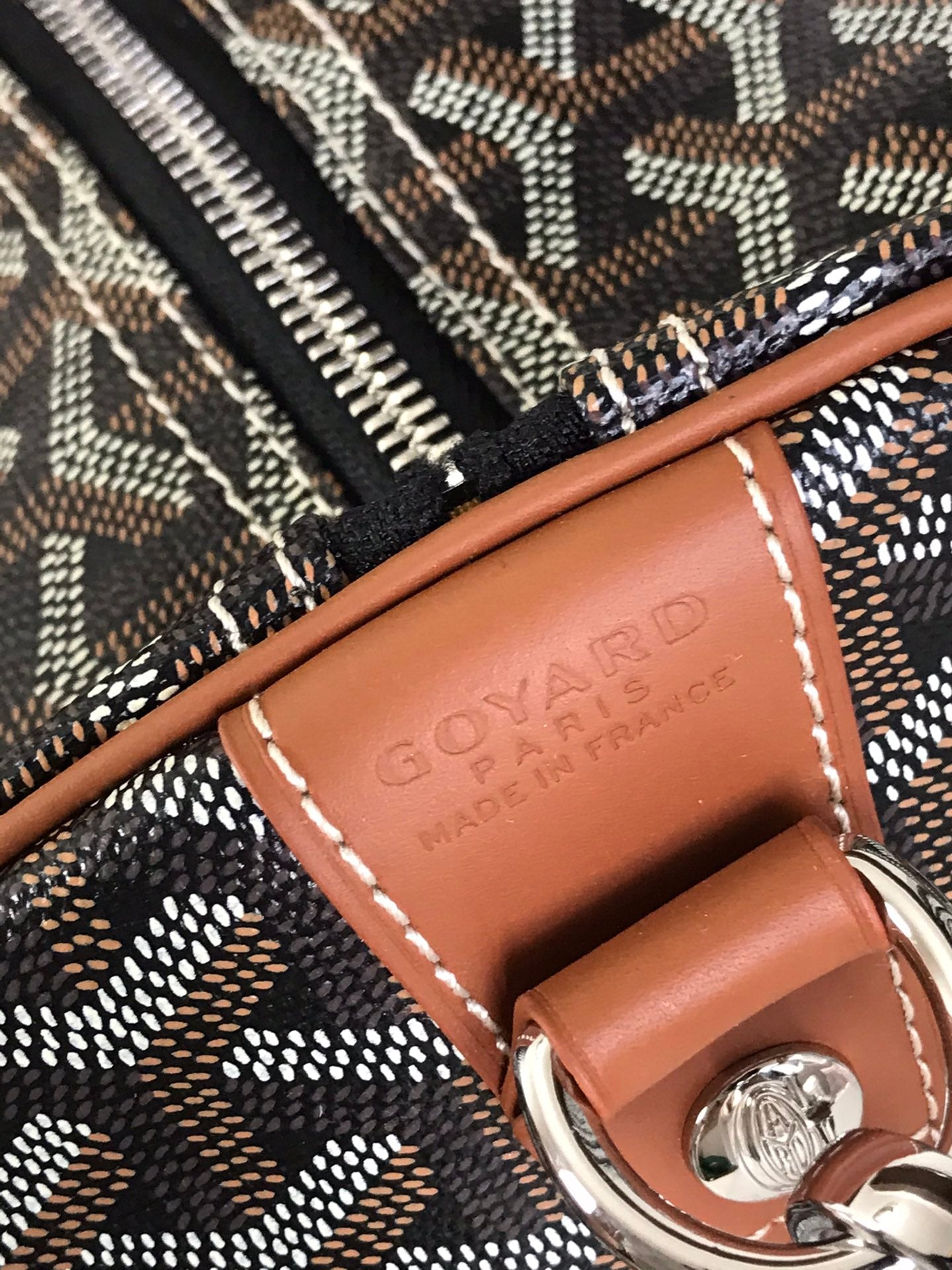 BOSTON 50 BAG IN BLACK GOYARDINE CANVAS AND TAN CALFSKIN TRIM