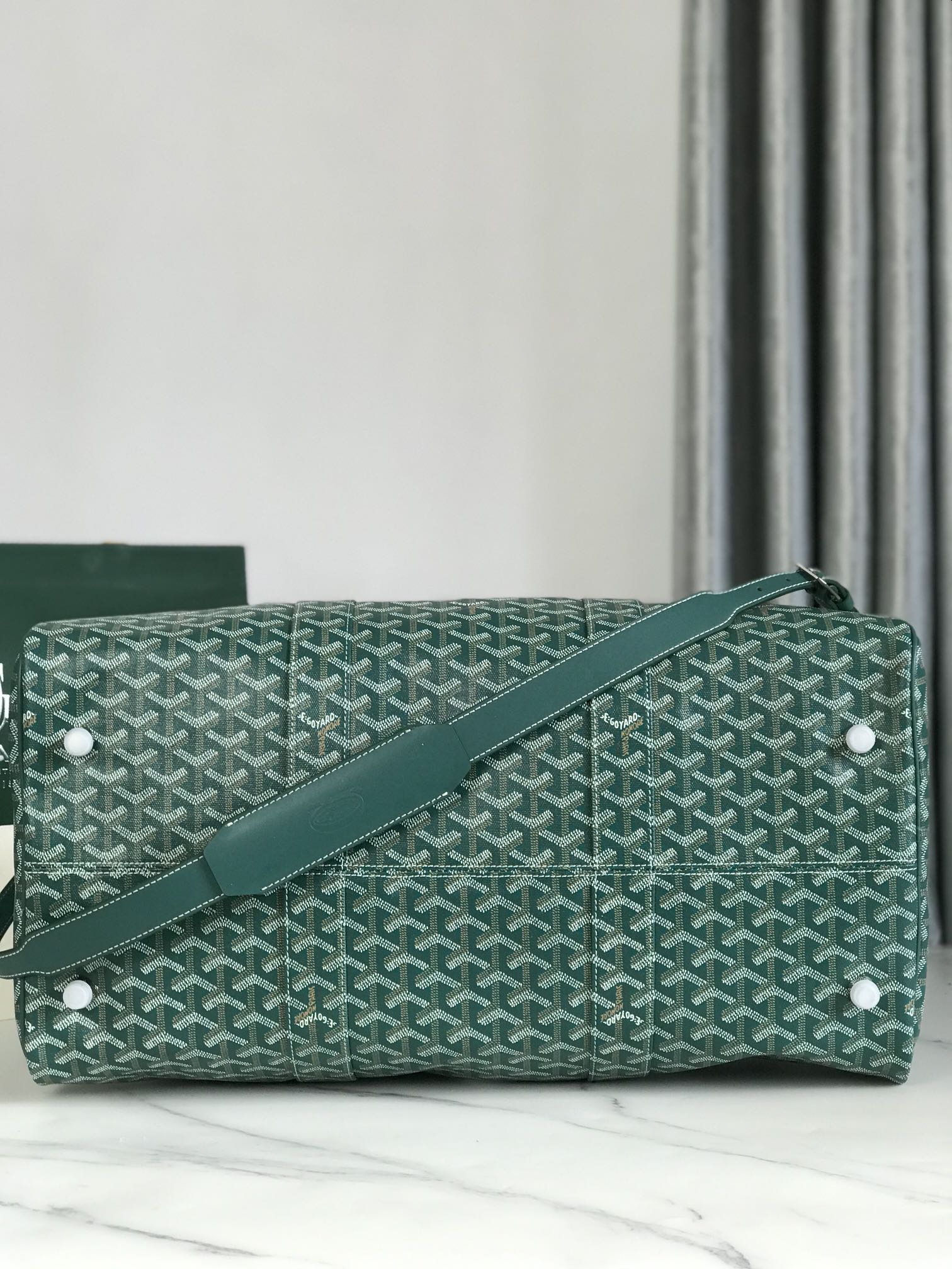 BOSTON 50 BAG IN GREEN GOYARDINE CANVAS AND CALFSKIN TRIM