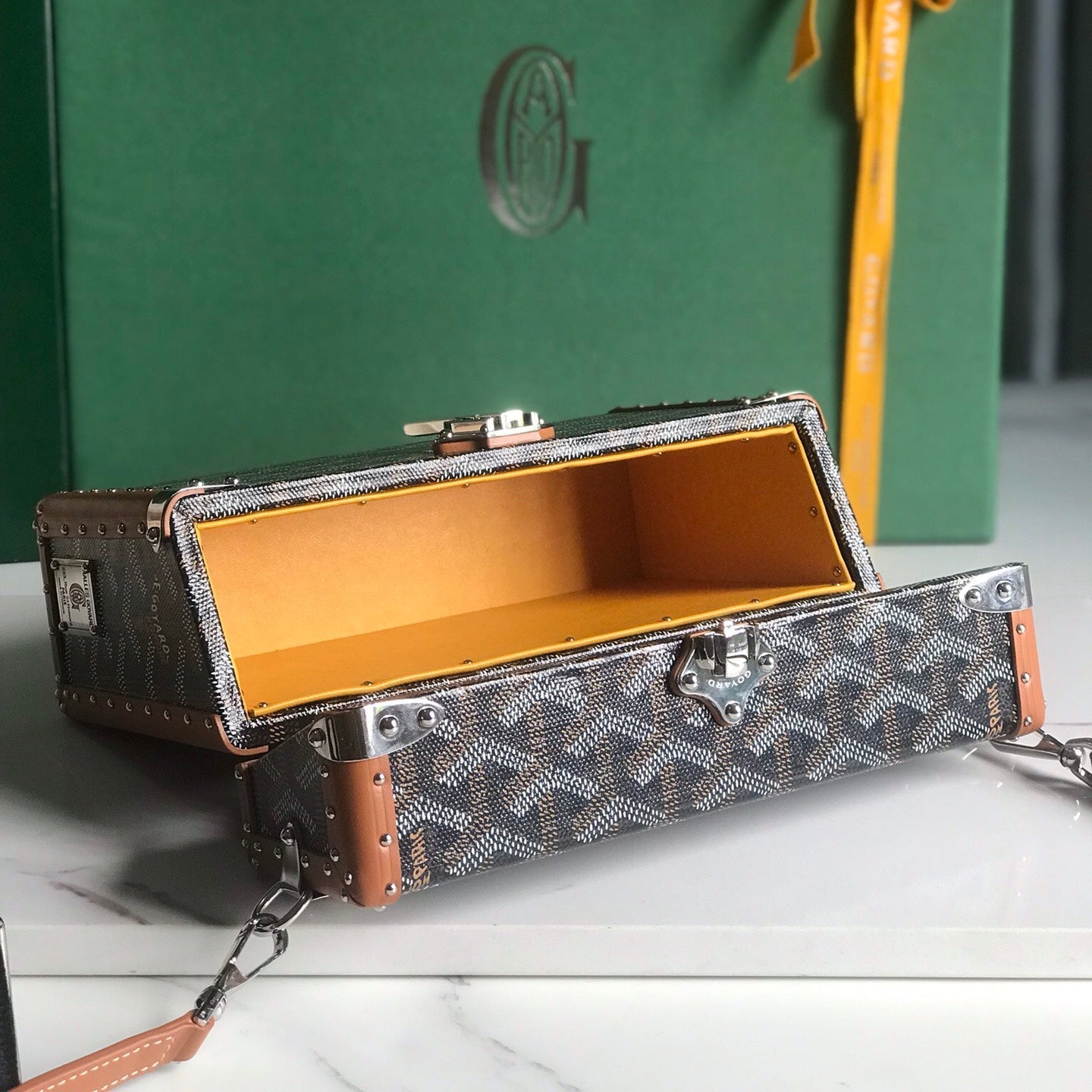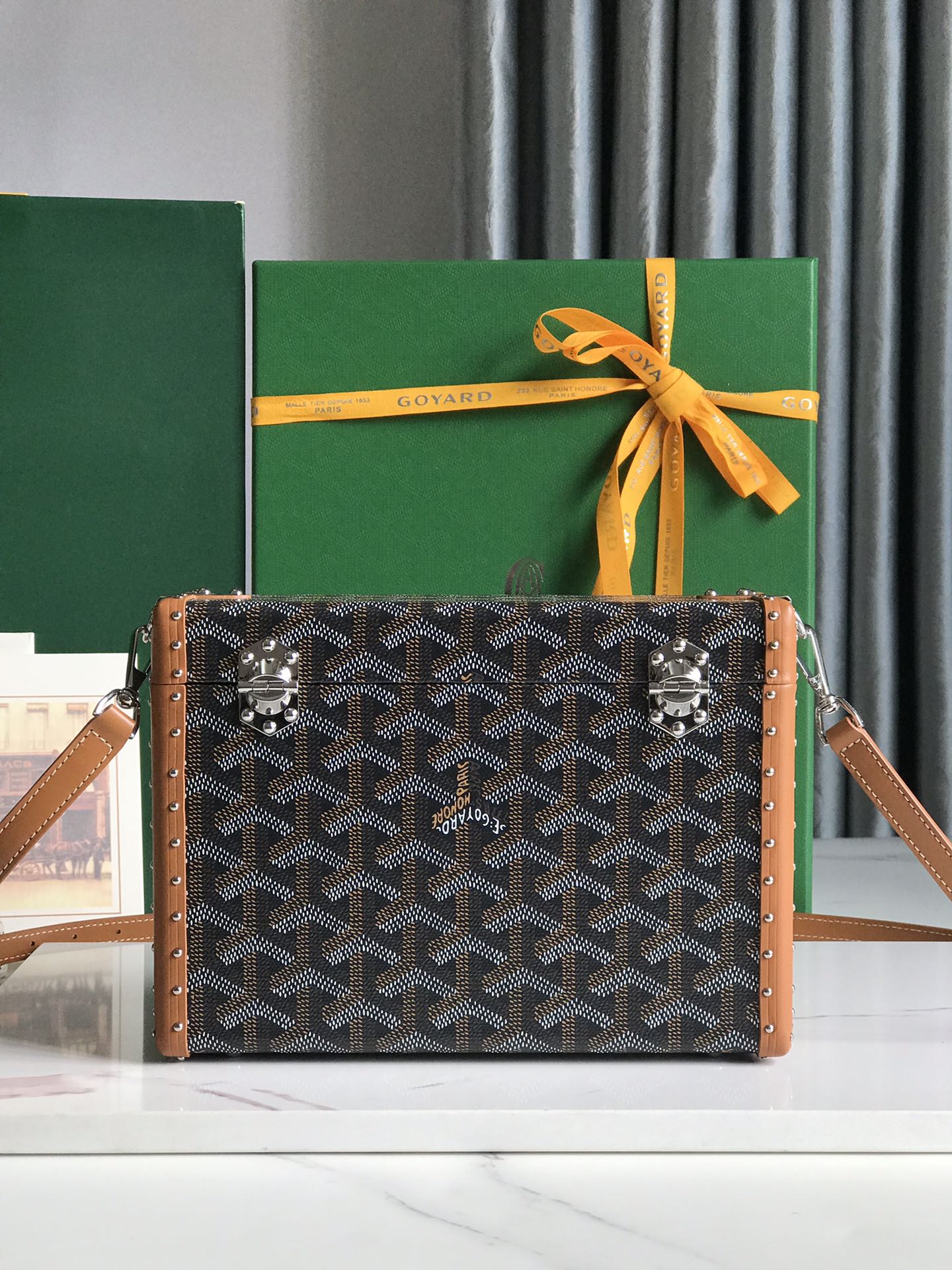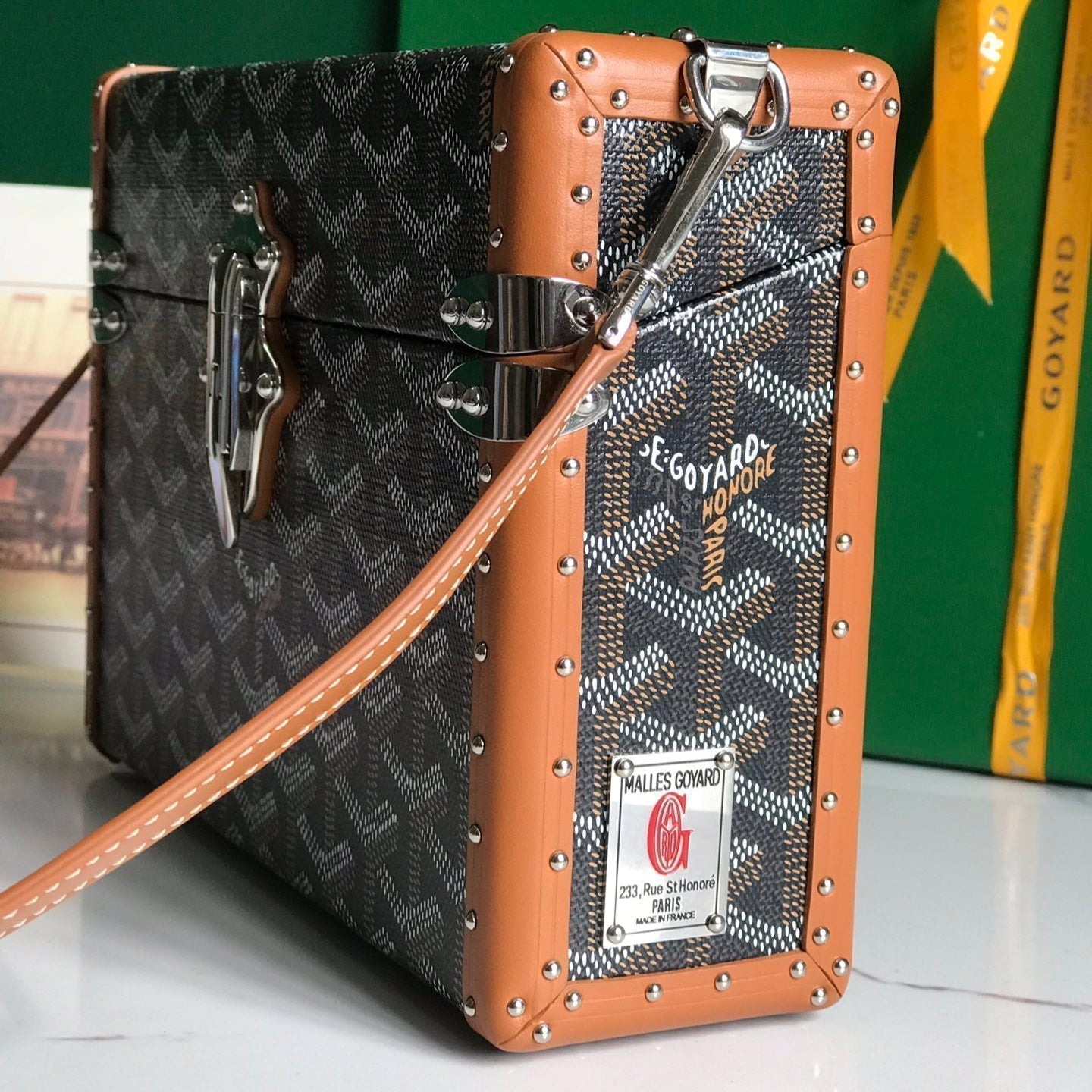 CASSETTE TRUNK BAG 21 IN TAN BROWN GOYARDINE CANVAS & CLAMECY COWHIDE