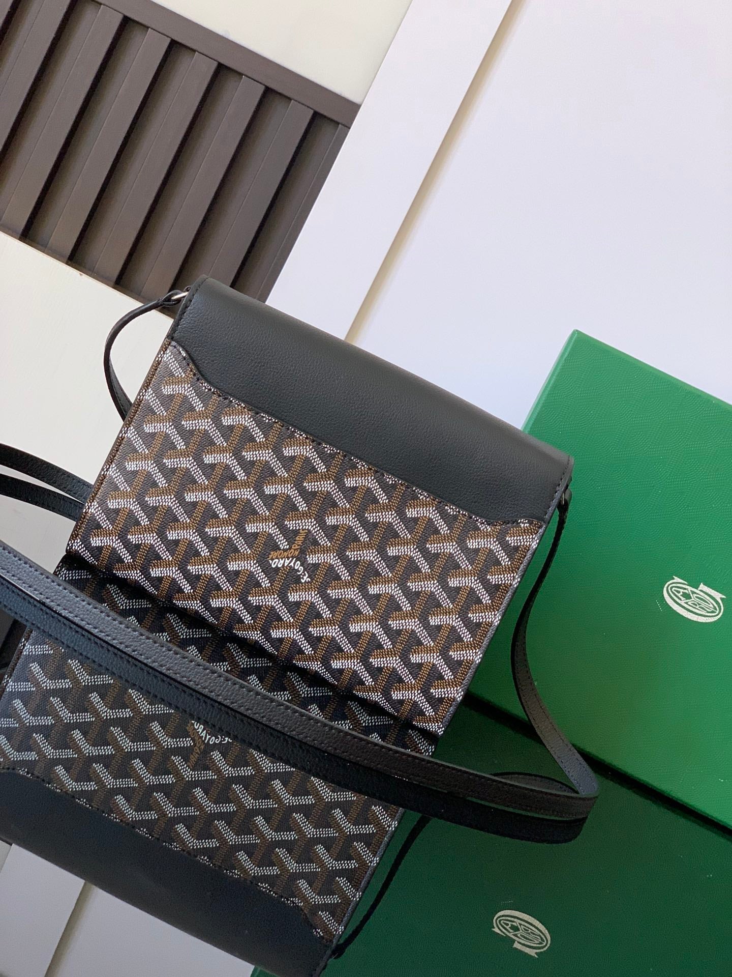 CHYPRE WALLET-POUCH 21 IN BLACK GOYARDINE CANVAS AND CALFSKIN