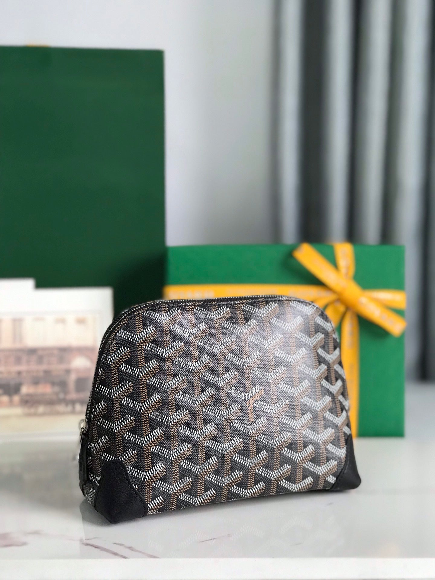 VENDÔME COSMETIC POUCH 17 IN BLACK GOYARDINE CANVAS AND CALFSKIN TRIM