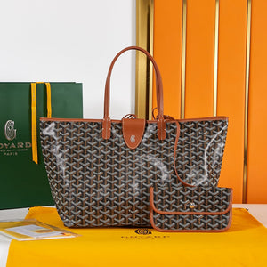 HARDY PM BAG 40 IN BROWN GOYARDINE CANVAS AND TAURILLON LEATHER TRIM