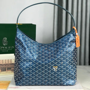 Bohème Hobo Bag 42cm Deep Blue Canvas Chevroches Calfskin
