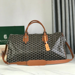 BOSTON 50 BAG IN BLACK GOYARDINE CANVAS AND TAN CALFSKIN TRIM