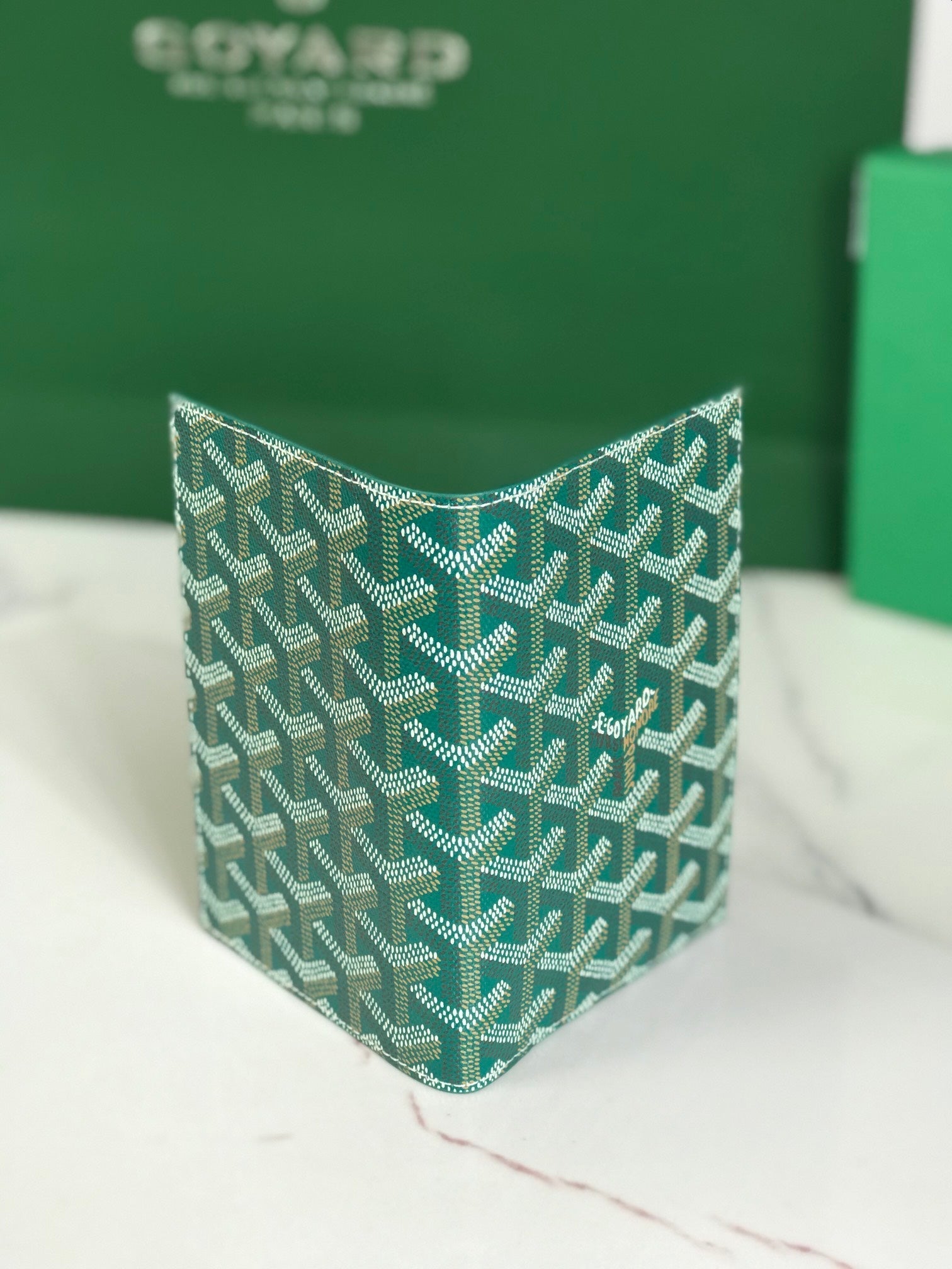 Goyard Grenelle Passport Cover 10cm Green Canvas & Cafskin