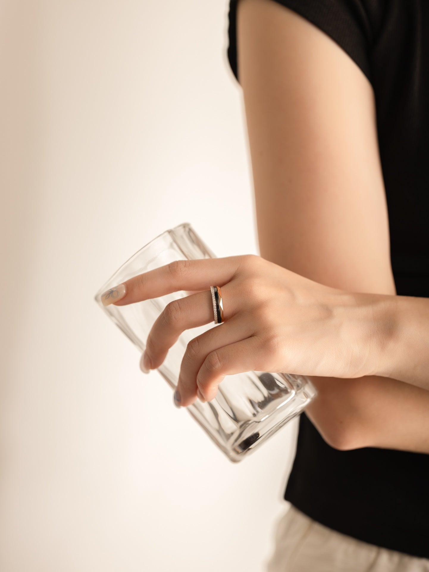 Laurence Gra Signature Ring 3.4mm Gold Black Diamond