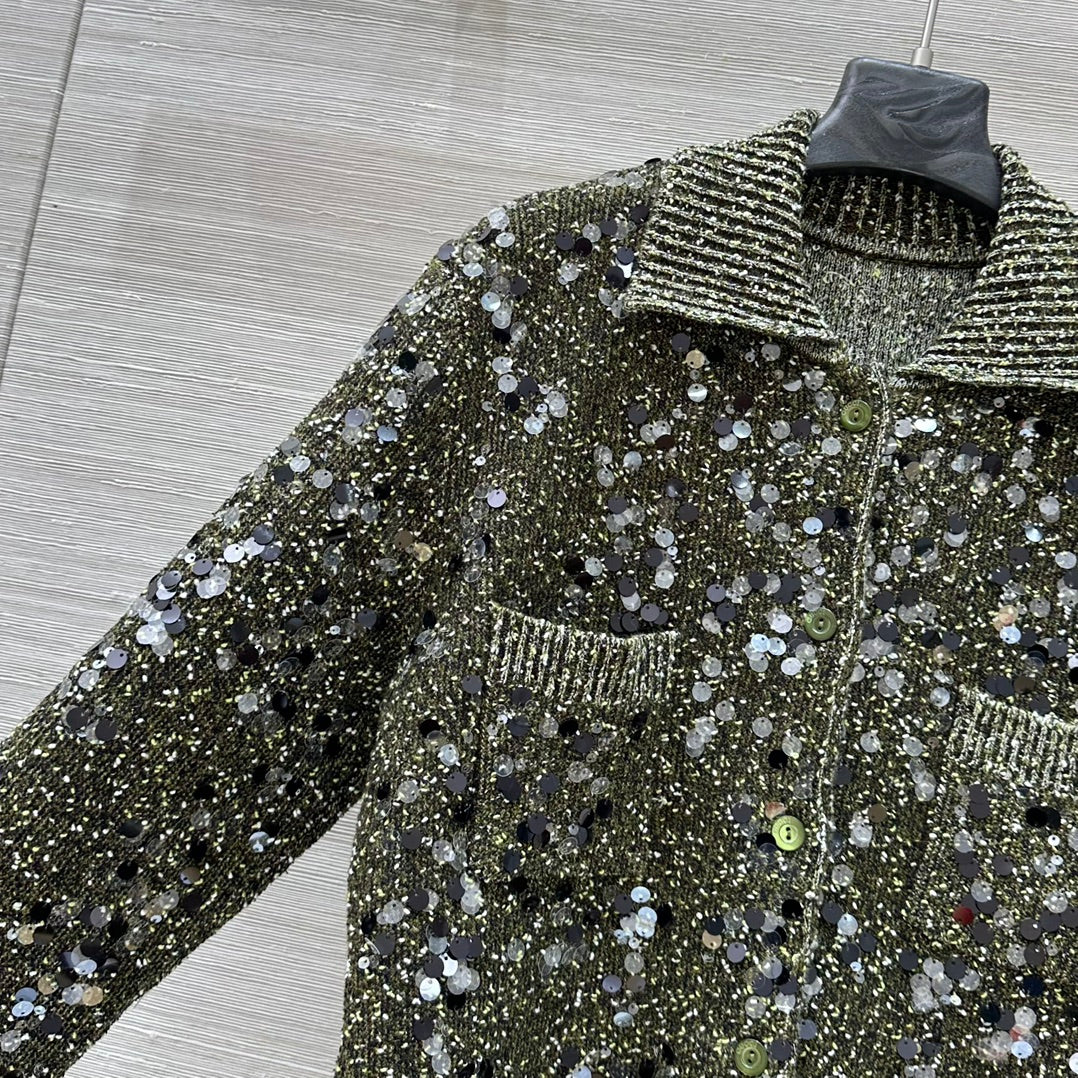 Gucci 25 Knitted Polo Long-sleeved Top Green Gray Wool