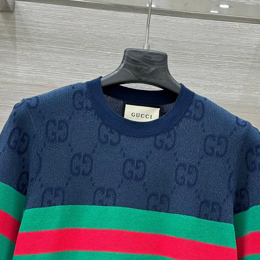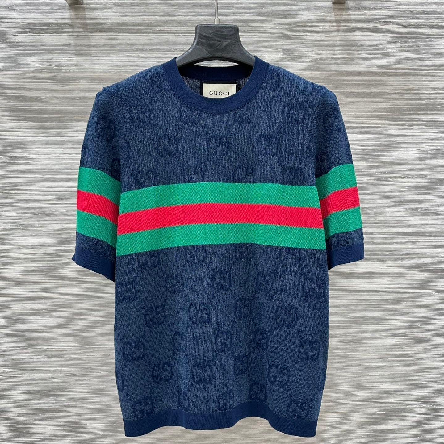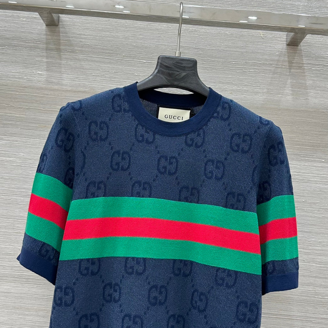 Gucci 25 Mesh Short-sleeved Top Blue Tencel