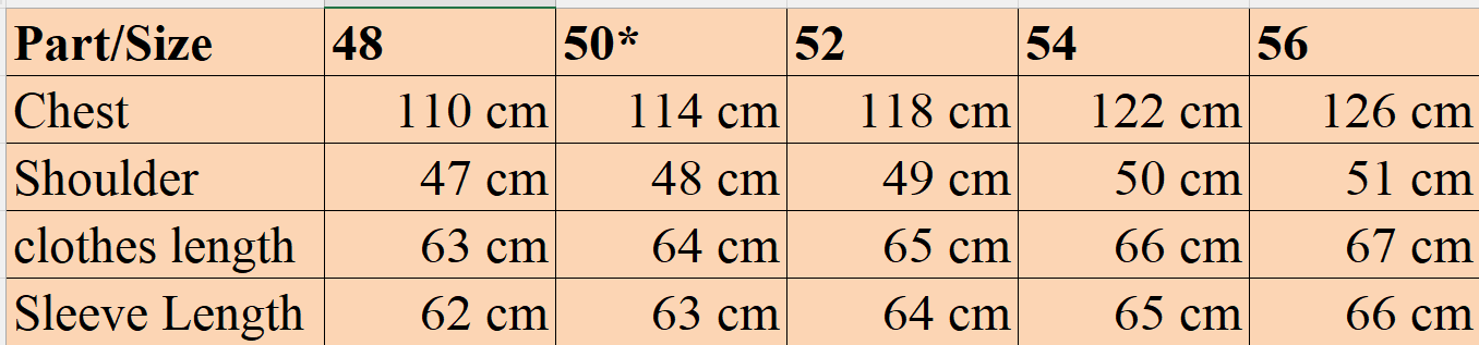 • Size : 48,50,52,54,56