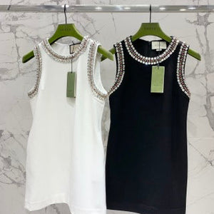 Gucci 2025 Logo Embroidered Knitted Vest Top Gray Wool