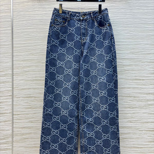 Gucci 2025 Logo Jacquard Straight Jeans Blue Cotton