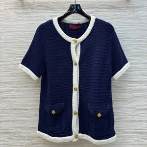 Gucci 25 Knitted Short-sleeved Cardigan Navy Blue Cotton